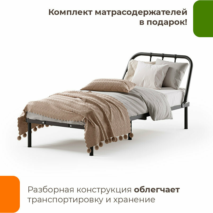 Кровать металлическая разборная 90х200 черная информация: