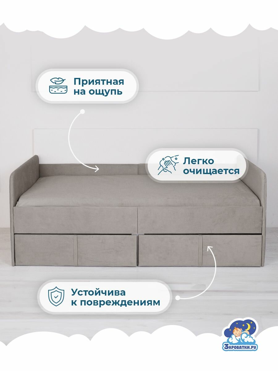 Кровать детская подростковая односпальная 180х80 Серый с двумя ящиками и бортиком в комплекте 14 535 ₽