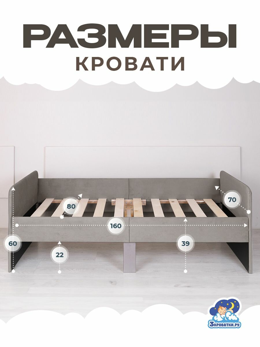 Кровать детская подростковая односпальная 160х70 Серый 10 500 ₽