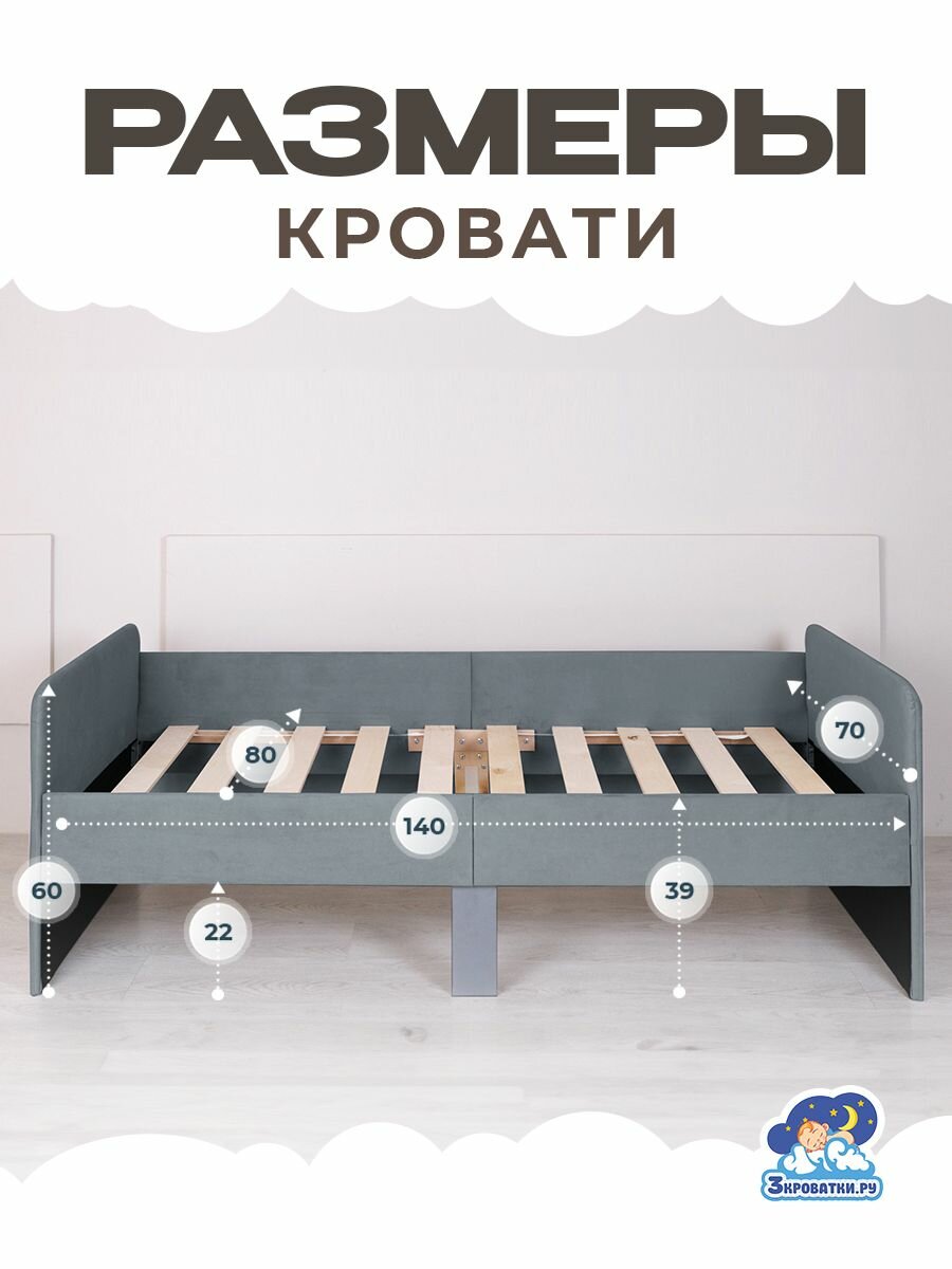 Кровать детская подростковая односпальная 140х70 Серый 10 000 ₽