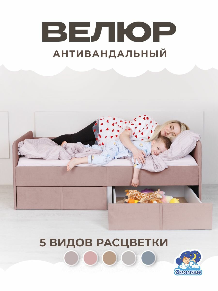 Отзывы на Кровать детская подростковая односпальная 180х80 Коралловый с двумя ящиками, бортиком и матрасом в комплекте