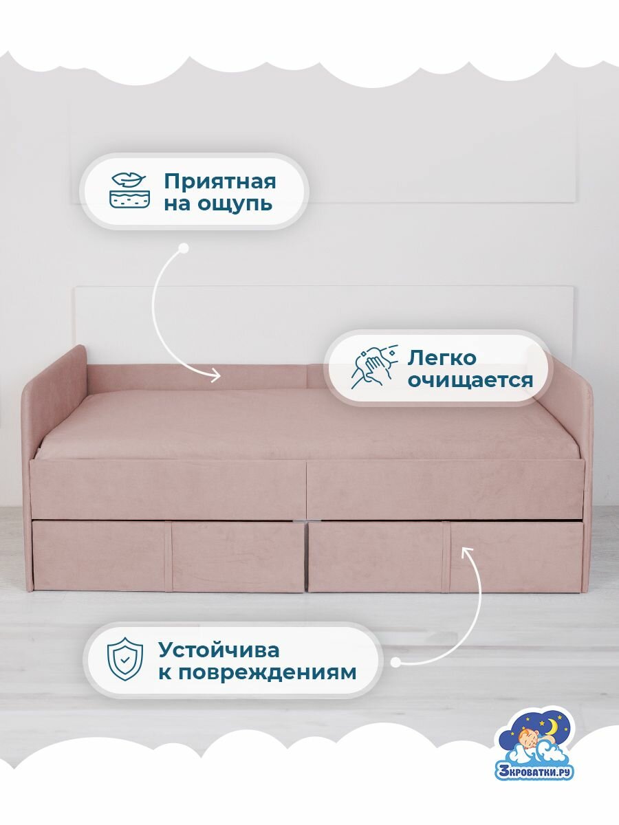 Кровать детская подростковая односпальная 180х80 Коралловый с двумя ящиками и бортиком в комплекте 15 030 ₽