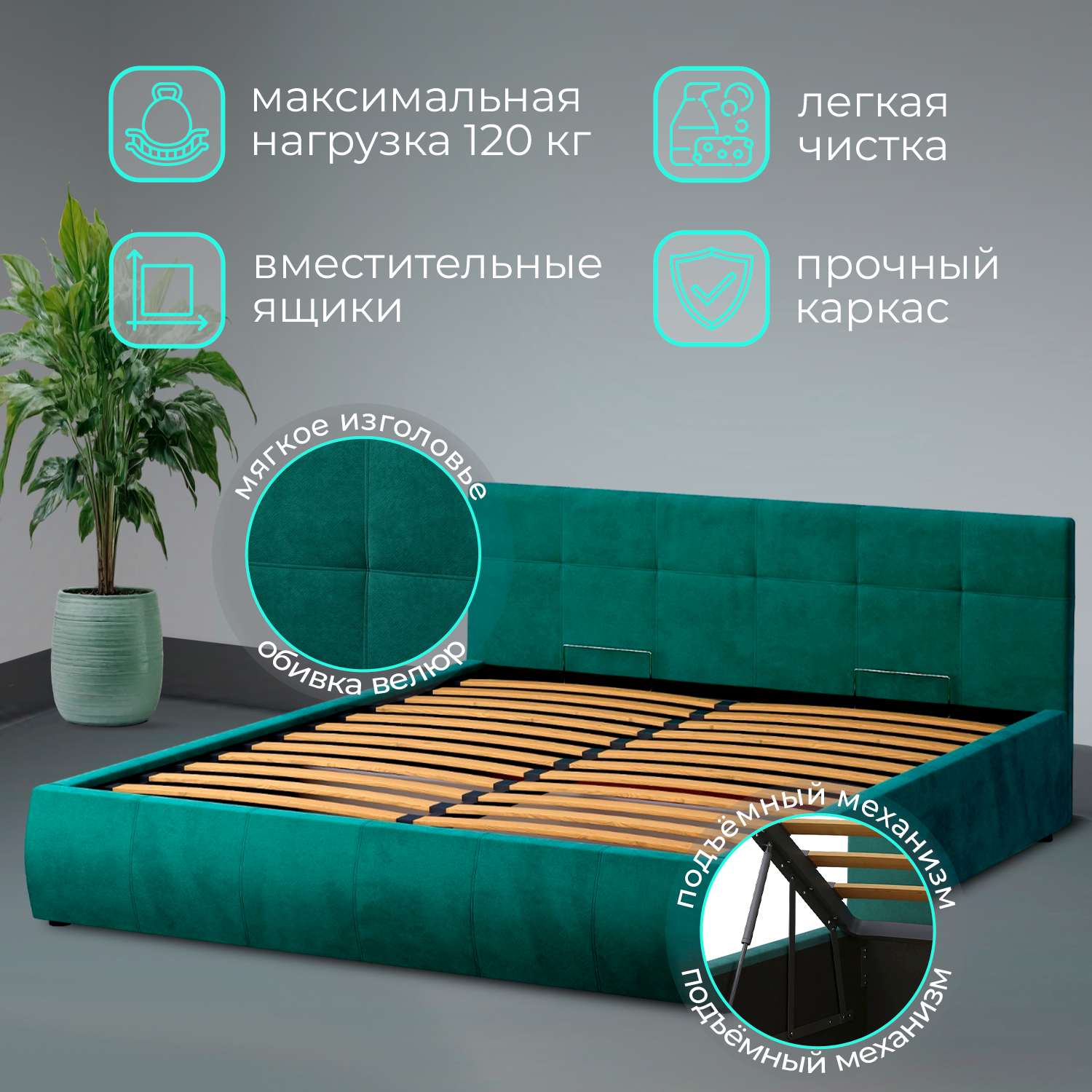 Кровать 180х200 с подъемным механизмом, двуспальная Венера-1 с мягким изголовьем для дома, для спальни, Ортопедическое основание, ящик для белья, велюр Атлантик, GALAXY Мебель информация:
