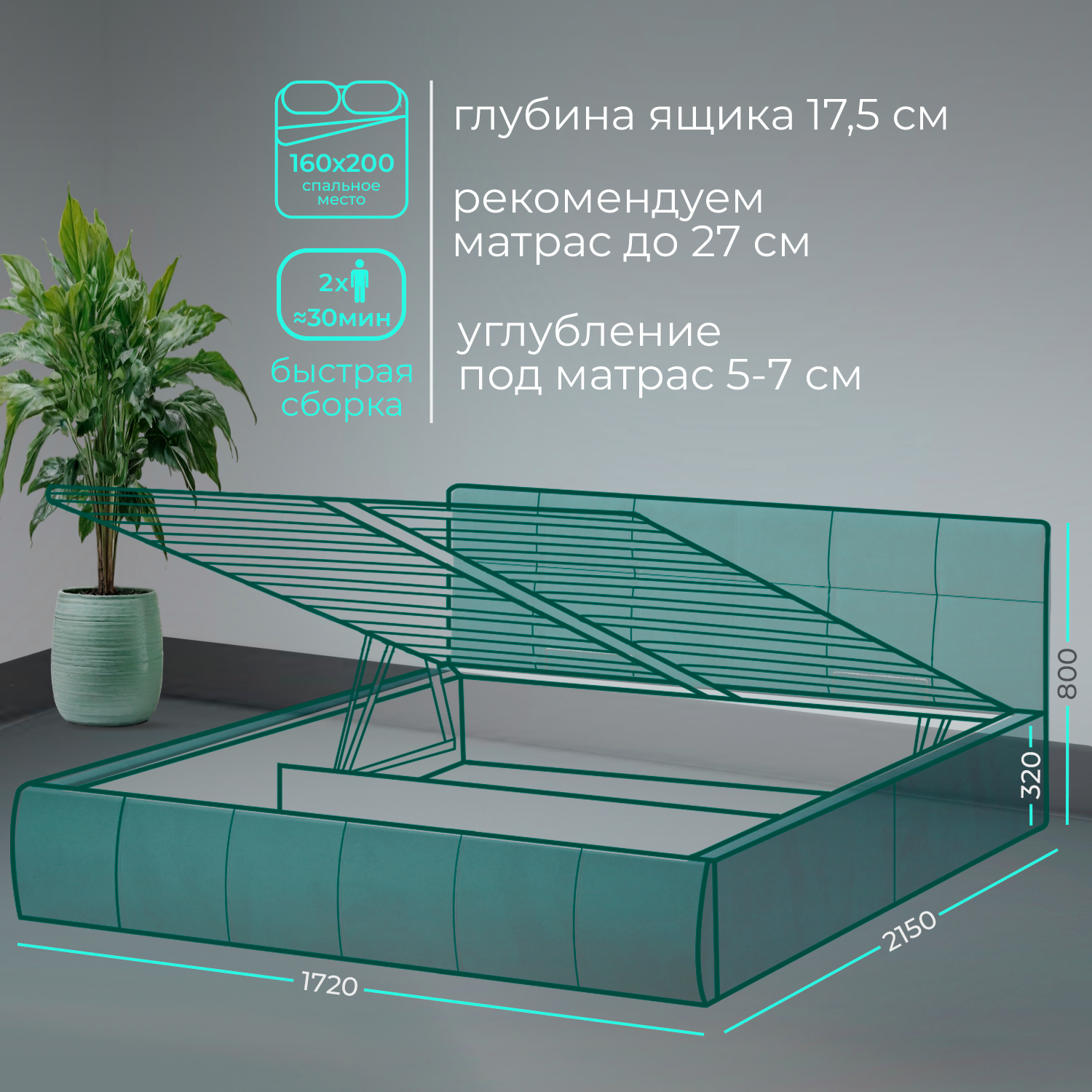 Кровать 160х200 с подъемным механизмом, двуспальная Венера-1 с мягким изголовьем для дома, для спальни, Ортопедическое основание, ящик для белья, велюр Атлантик, GALAXY Мебель информация: