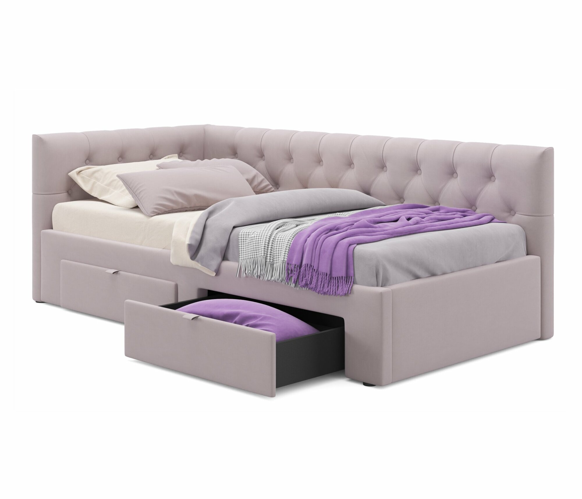 Односпальная кровать-тахта угловая Afelia 900 лиловая Zeppelin с ортопедическим основанием , 90х200, мягкая из велюра, с ящиками информация: