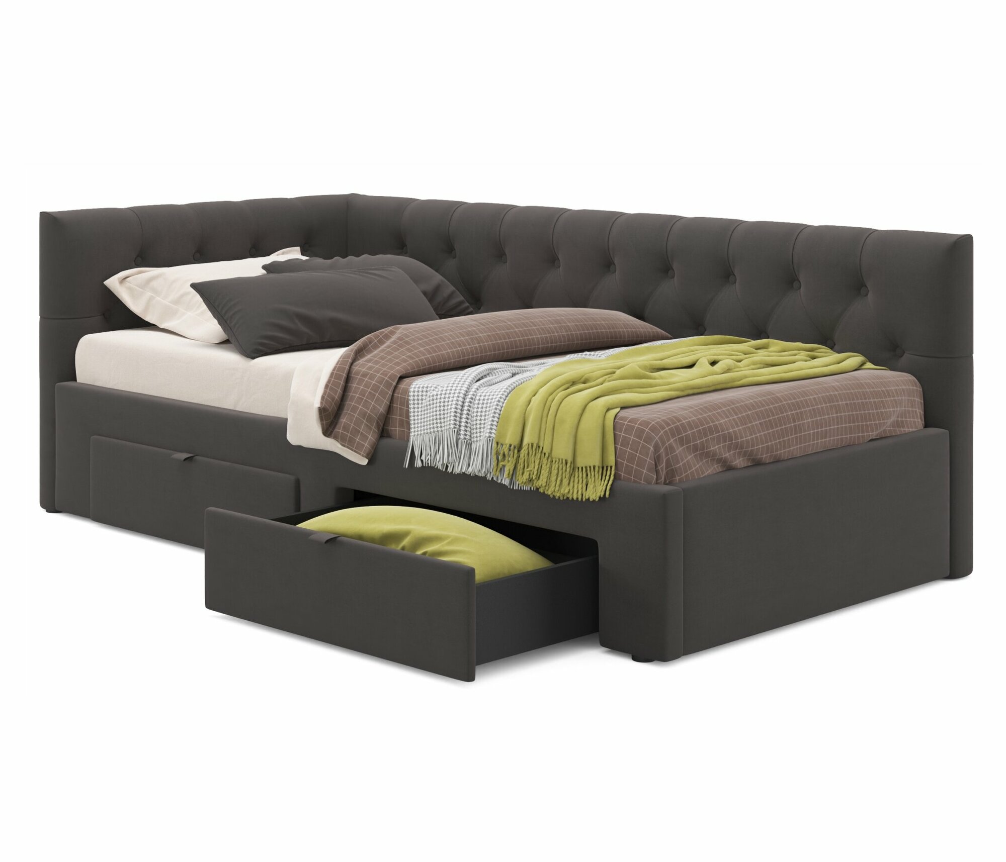 Односпальная кровать-тахта угловая Afelia 900 темная Zeppelin ортопед 90х200, из велюра, с ящиками 30 000 ₽