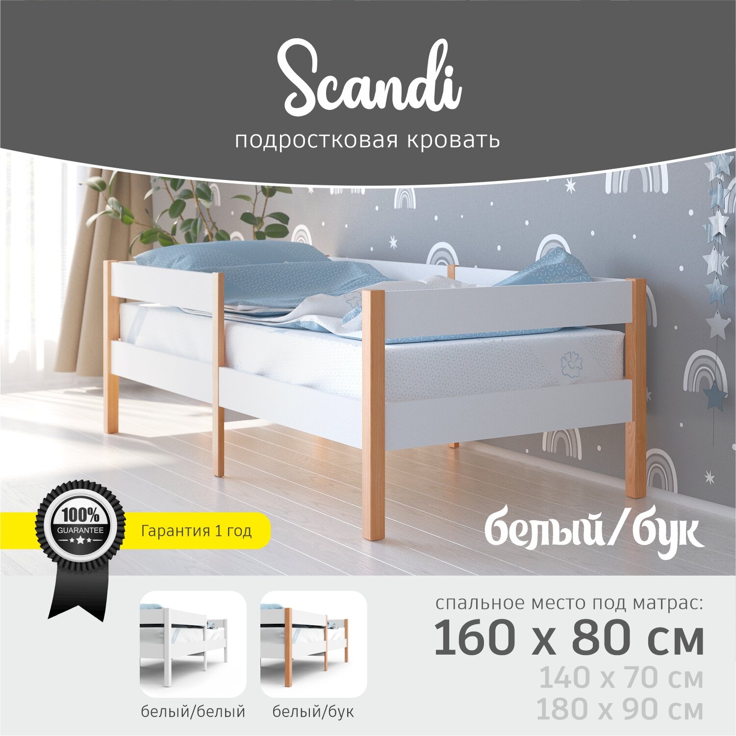 Кровать Baby Master "Софа Сканди", 160х80 см, цвет белый-бук информация: