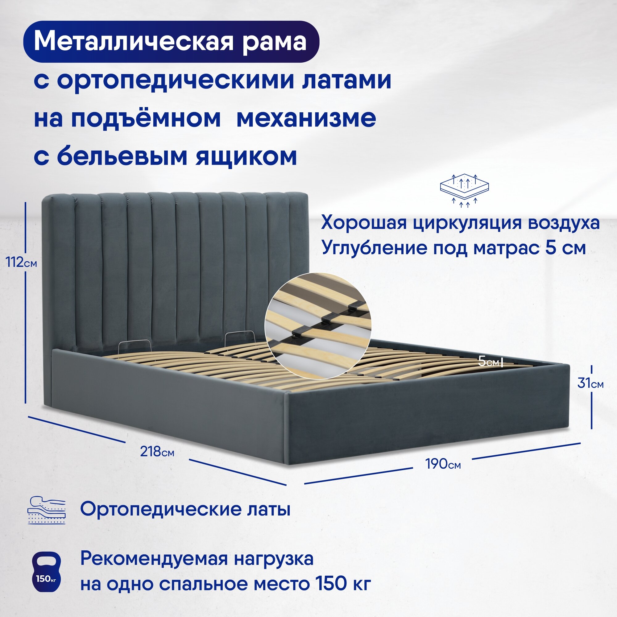 Двуспальная кровать Страйп 180х200, с подъемным механизмом, Сonfetti Blue Stone информация: