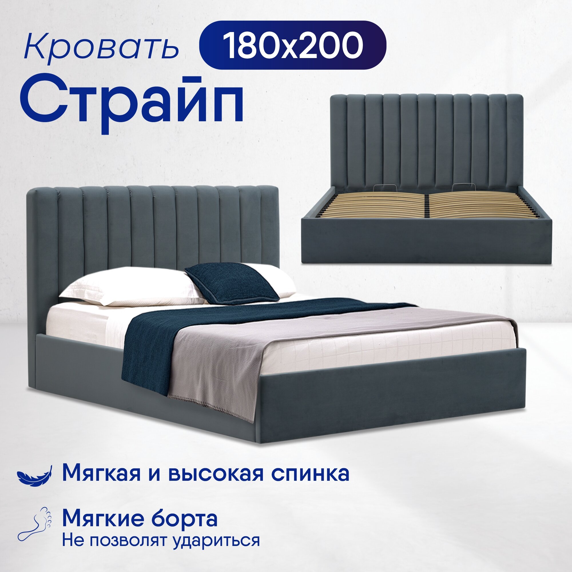 Двуспальная кровать Страйп 180х200 с подъемным механизмом, Ладья, с мягким изголовьем для дома и спальни, ортопедическое основание, ящик для белья, California 102 33 634 ₽