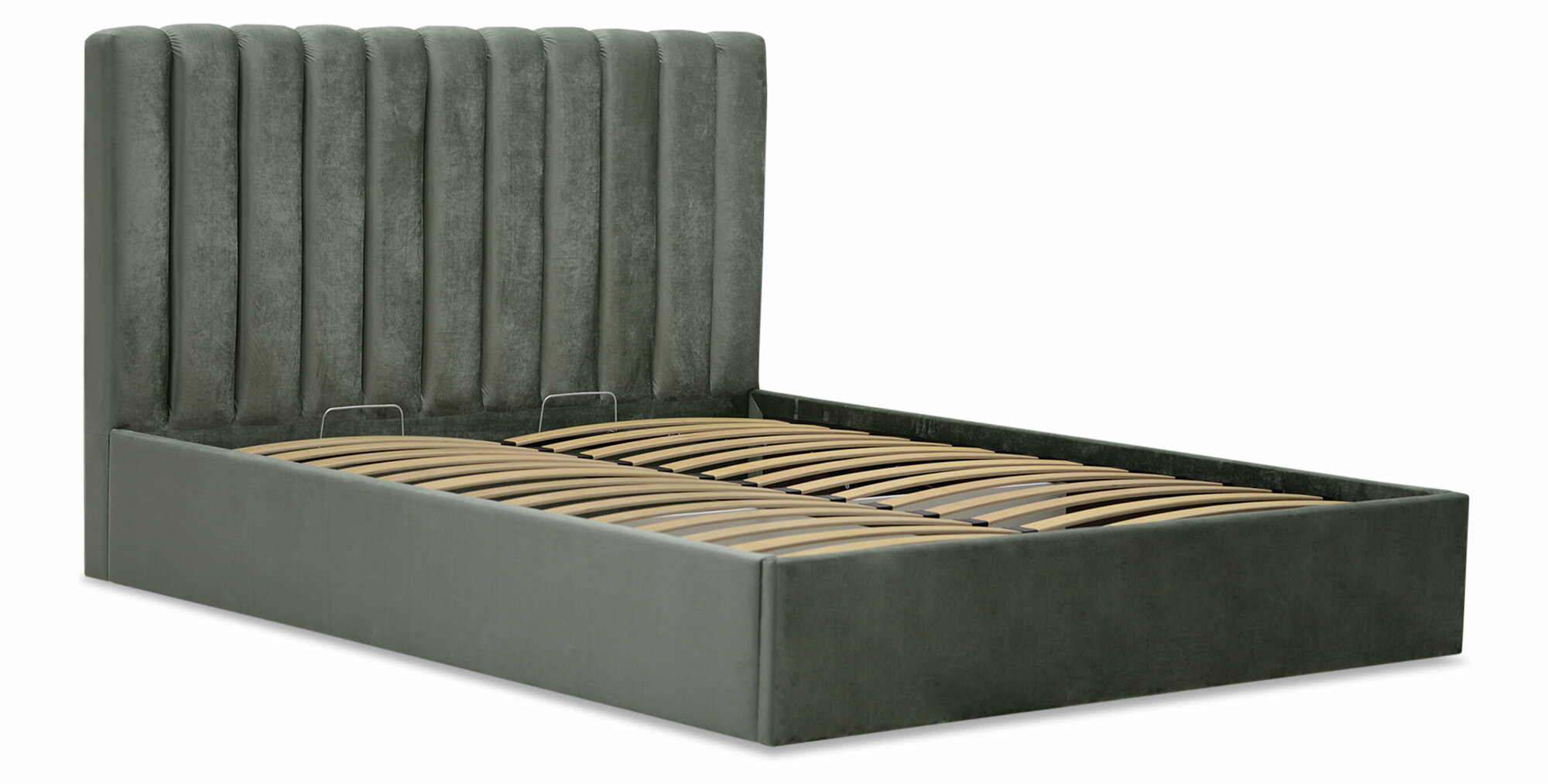 Двуспальная кровать Страйп 160х200 с подъемным механизмом, Ладья, с мягким изголовьем для дома и спальни, ортопедическое основание, ящик для белья, Сonfetti Olive 30 684 ₽