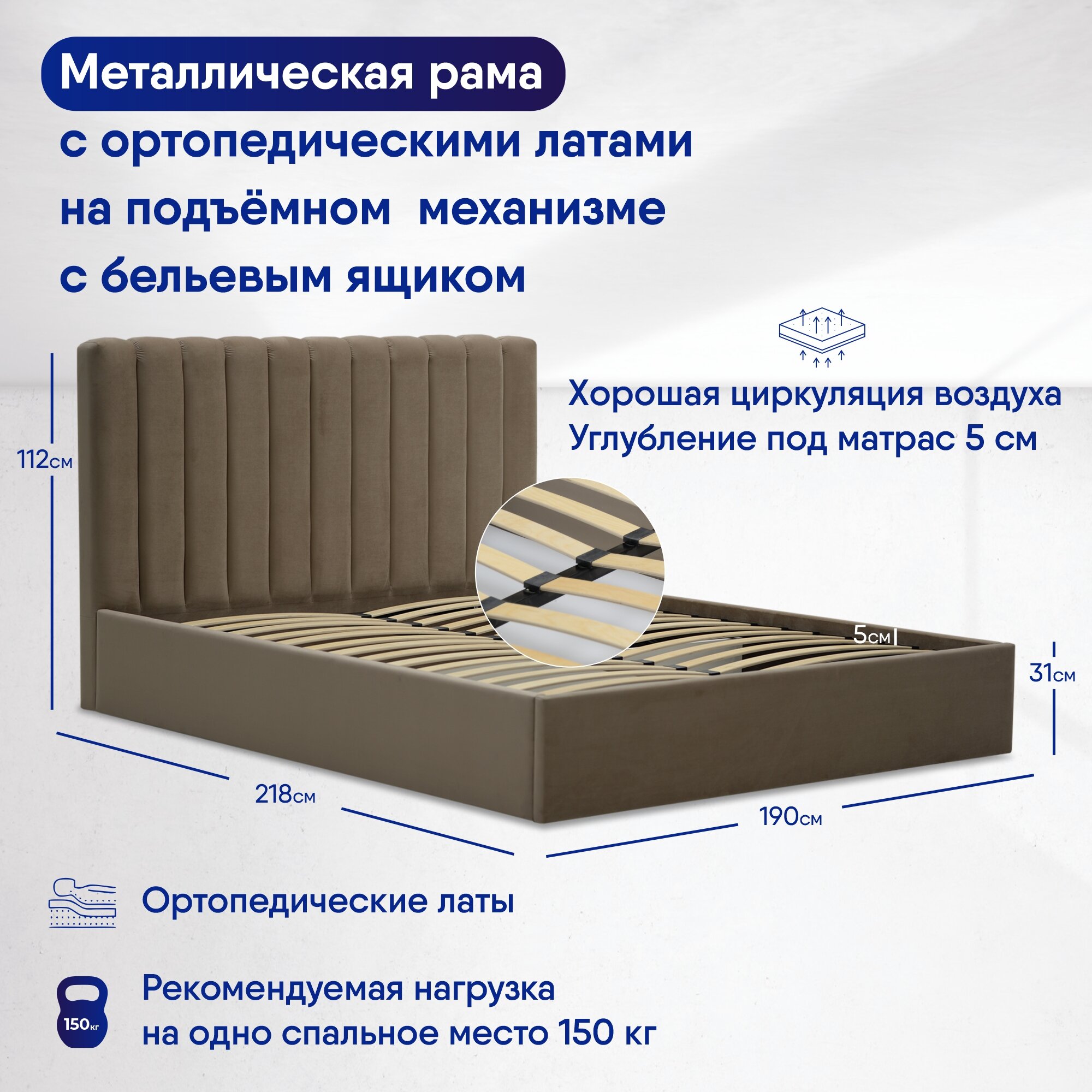 Двуспальная кровать Страйп 160х200 с подъемным механизмом, Ладья, с мягким изголовьем для дома и спальни, ортопедическое основание, ящик для белья, California 102 30 684 ₽