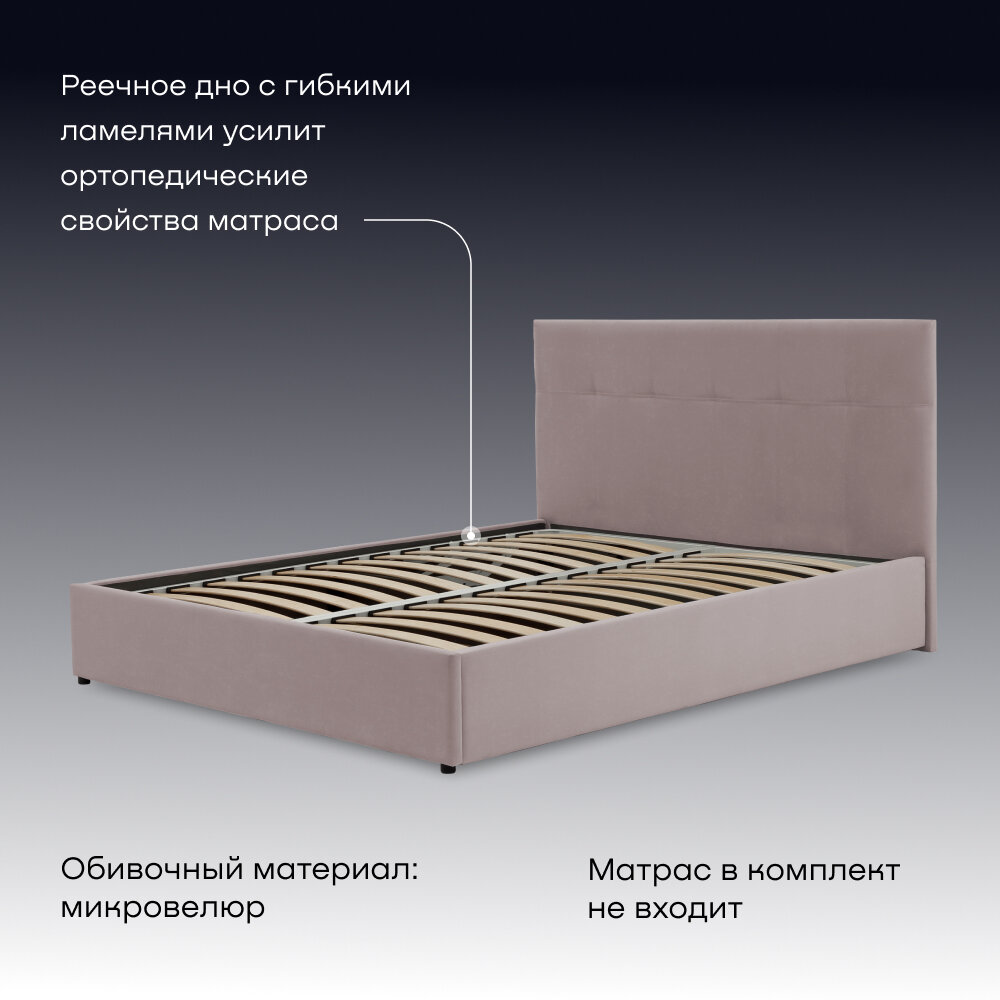 Двуспальная кровать buyson BuyDream 180х200 см, микровелюр, пудровый информация: