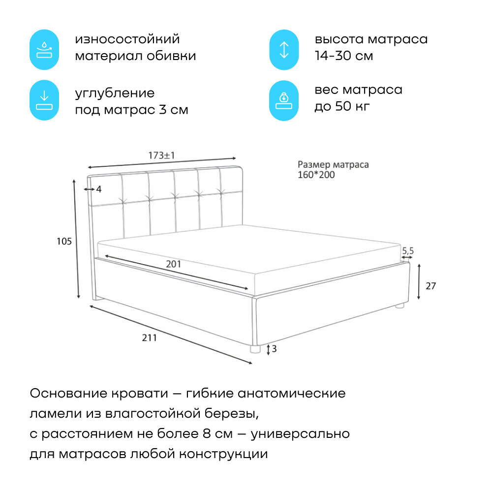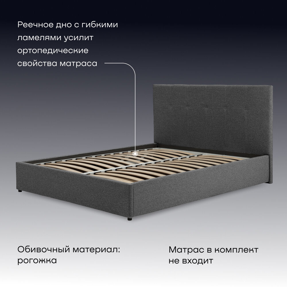 Двуспальная кровать buyson BuyDream 200х160, серая, рогожка информация: