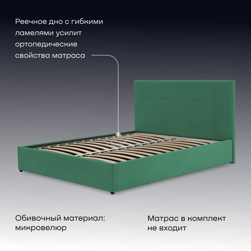 Двуспальная кровать buyson BuyDream 140х200 см, изумруд, микровелюр информация: