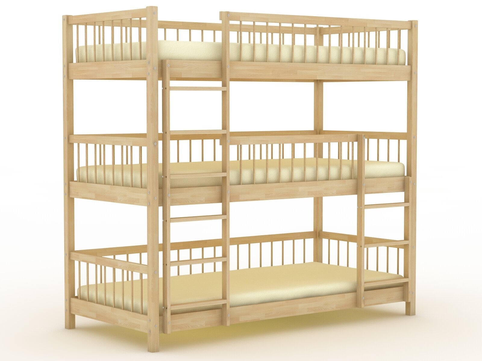 10 цен на Трёхъярусная кровать "Берёзка 18Л" без покрытия, 80x190 см, ORTMEX