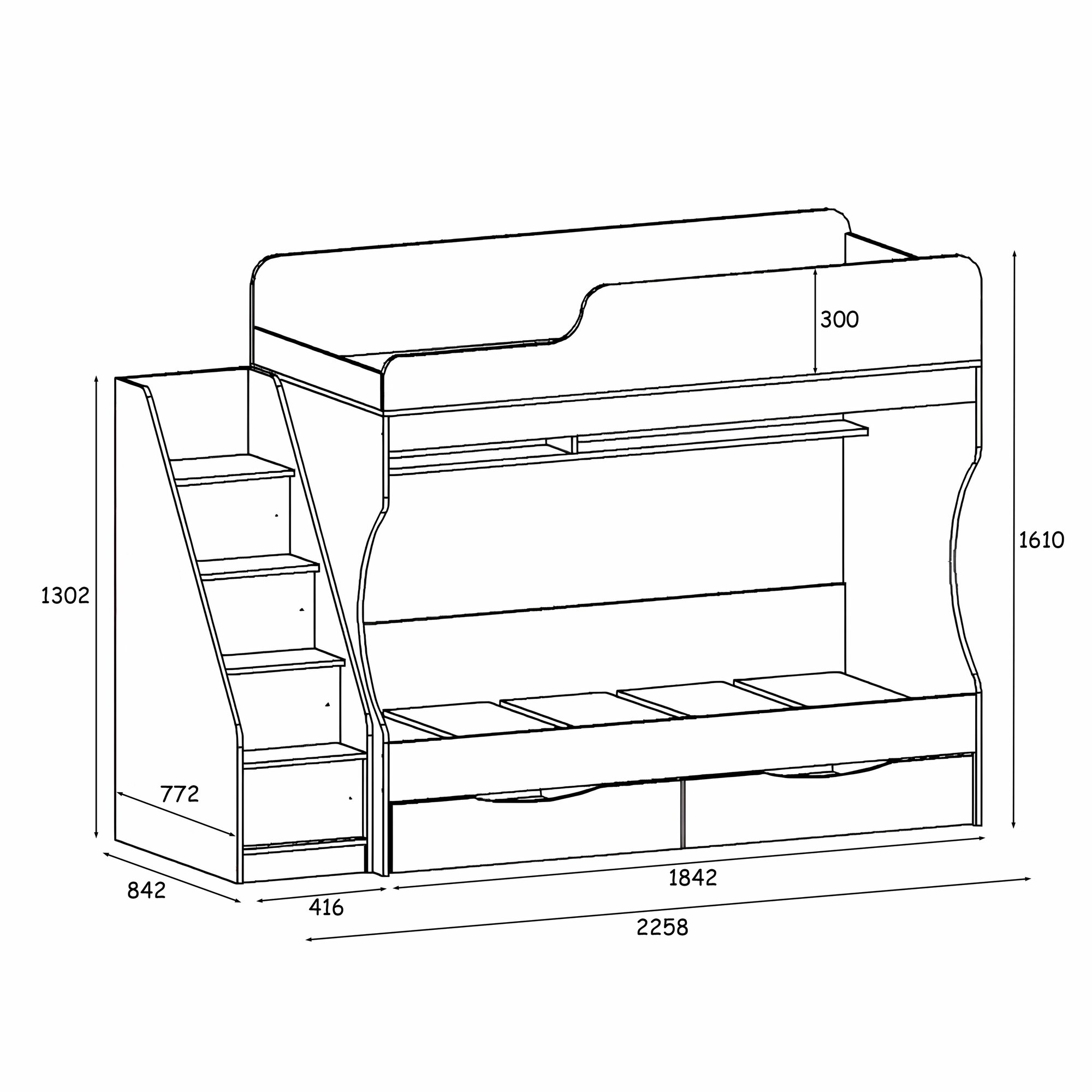 10 цен на Двухъярусная кровать Геометрия-2 от Астрид-Мебель, с лестницей и ящиками, два спальных места 180х80 см. Дуб делано/Белый