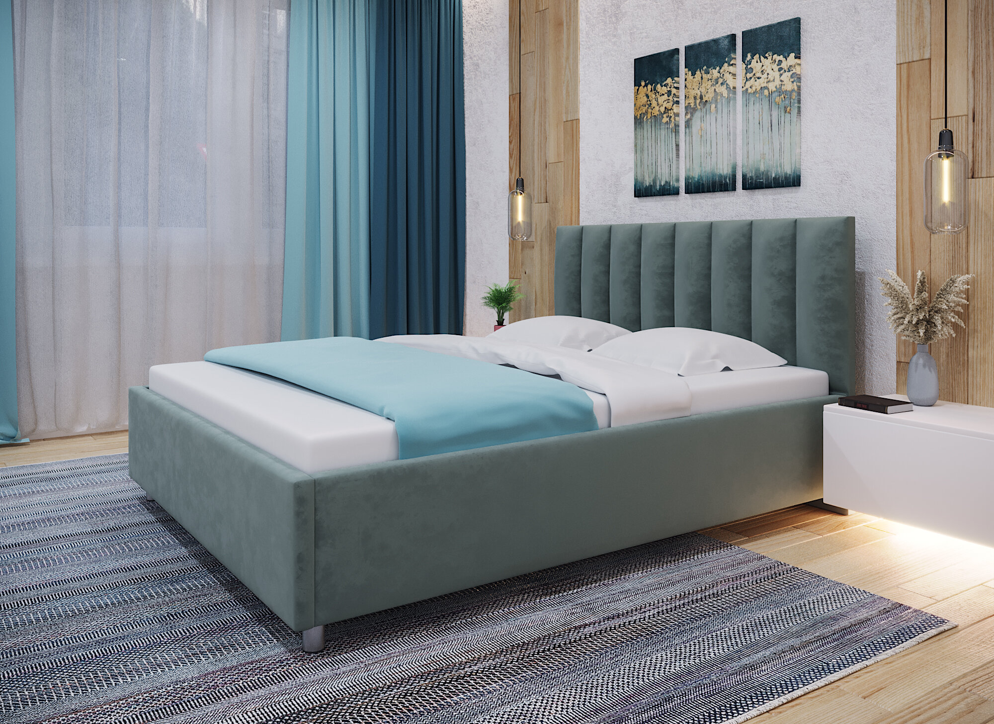 Двуспальная кровать Твист 140х200 с подъемным механизмом и ортопедическим основанием цвет Морской бриз 27 100 ₽