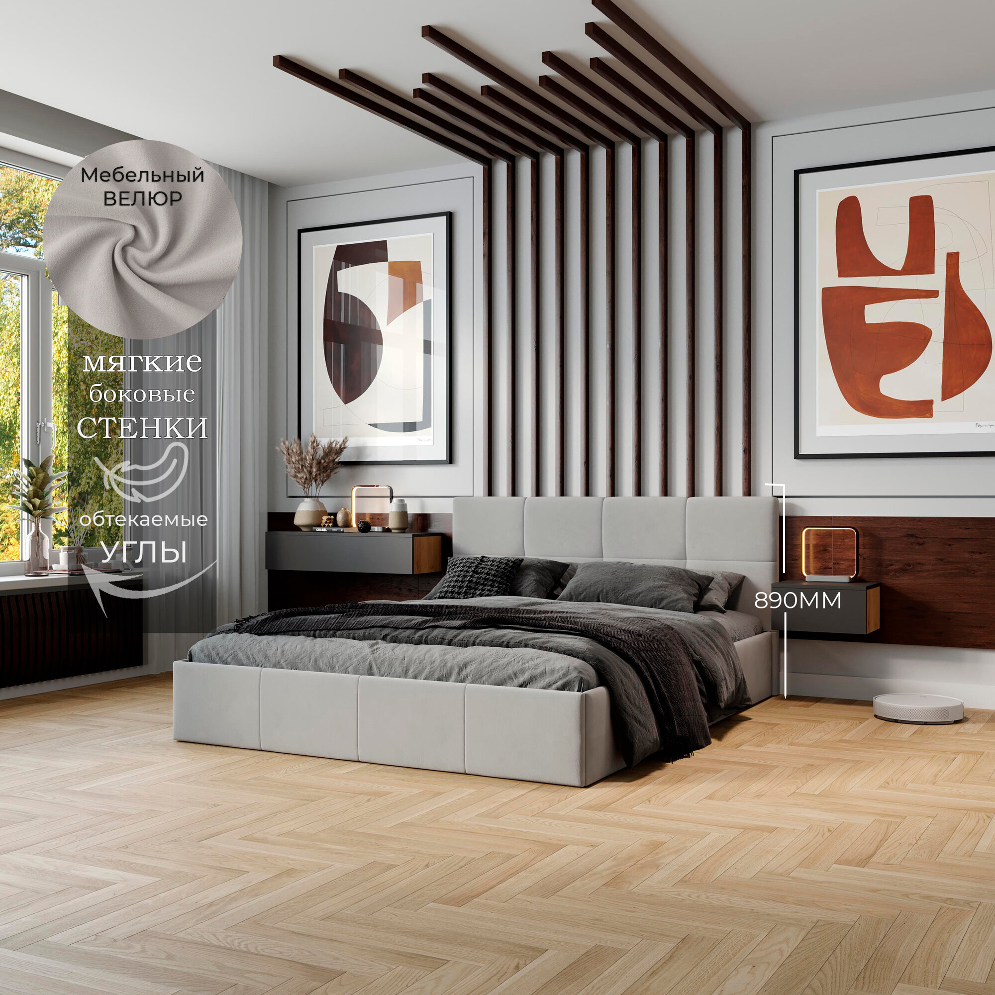 Кровать двуспальная ТриЯ 160х200 с подъемным механизмом, Мона, Велюр Confetti Silver информация: