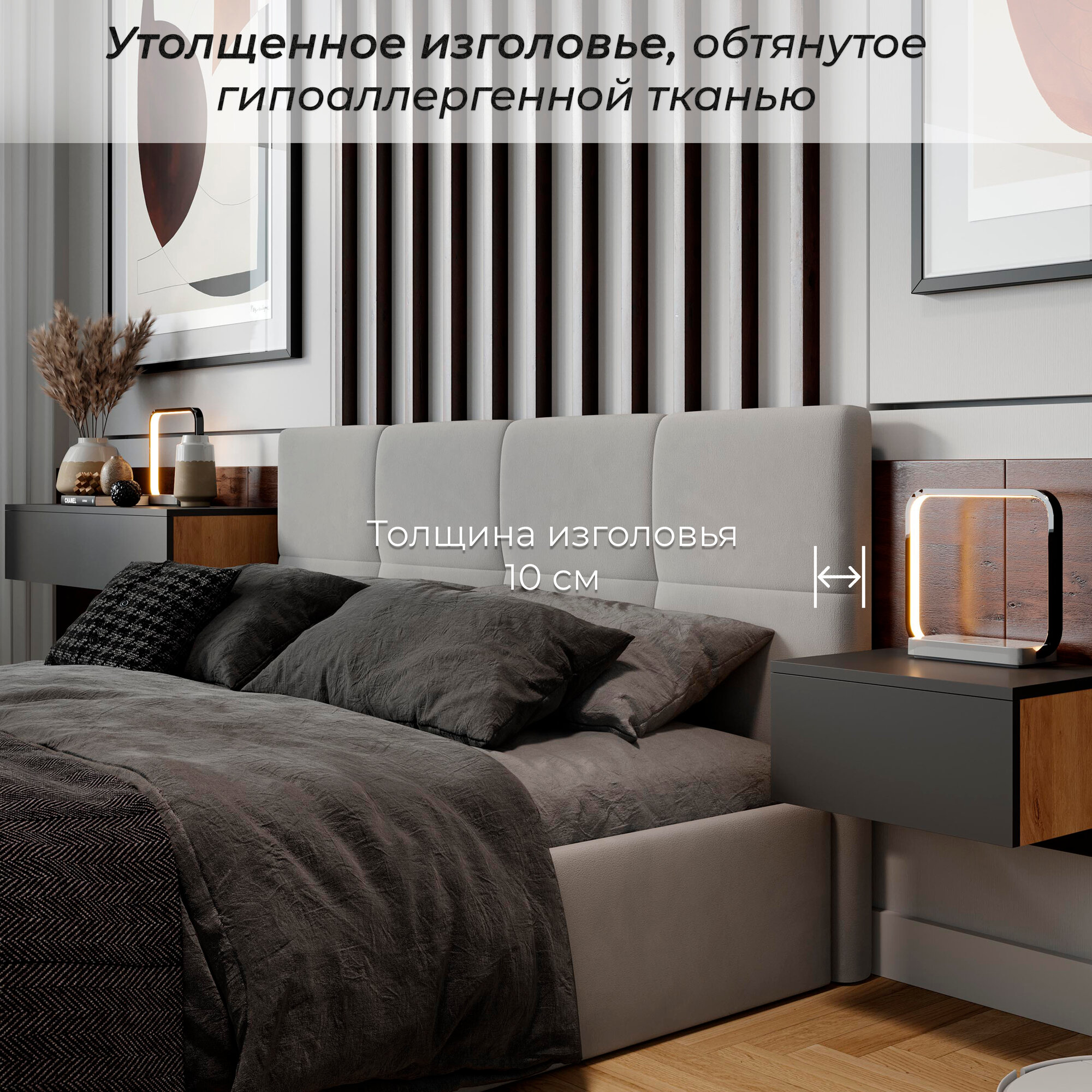 | Особенности | мягкое изголовье, с изножьем, с подъемным механизмом |