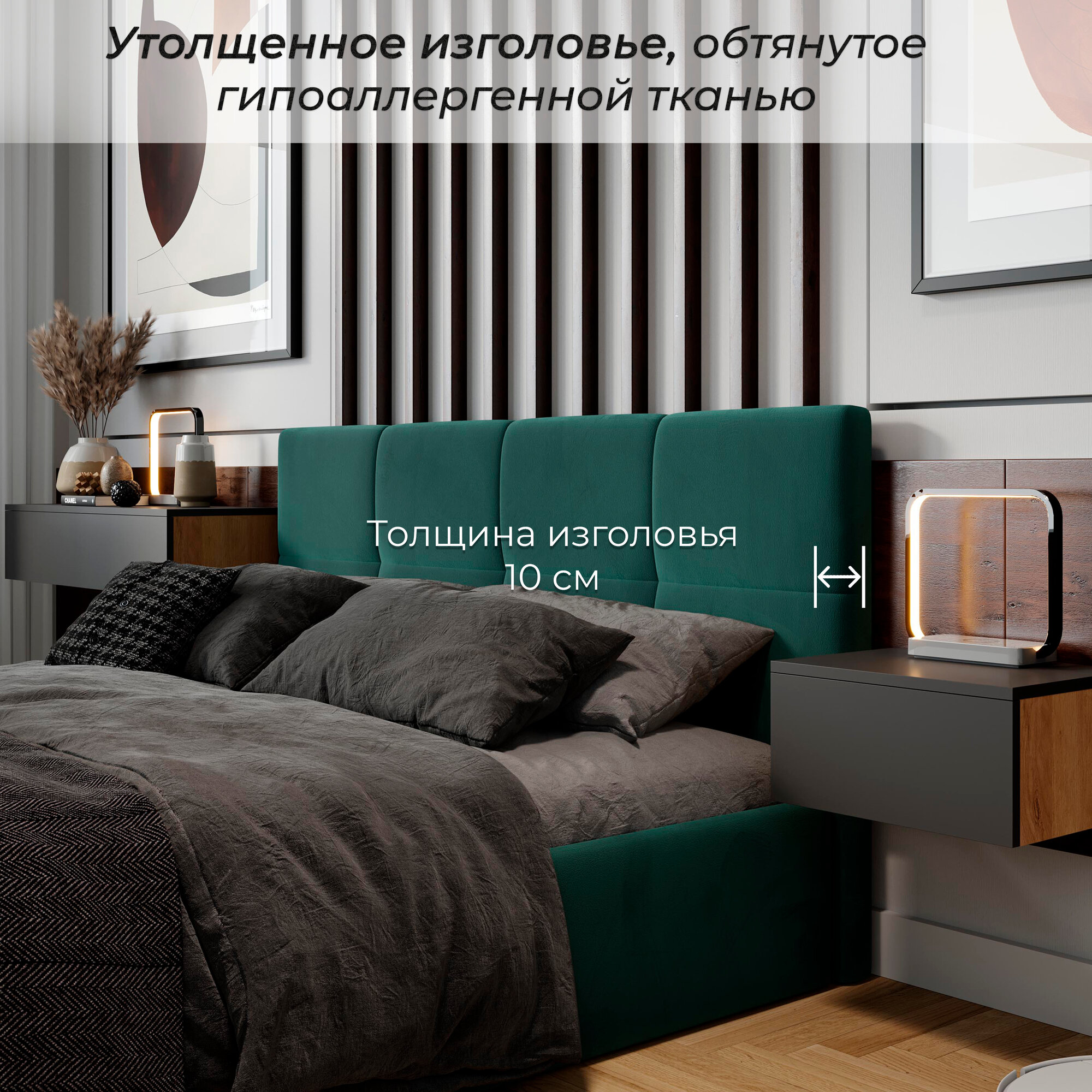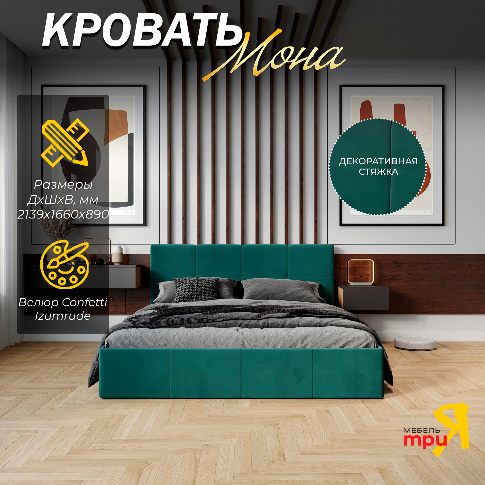 10 цен на Кровать двуспальная ТриЯ 160х200 с подъемным механизмом, Мона, Велюр Confetti Izumrud