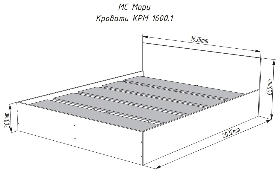 Кровать ДСВ Мебель Мори КРМ 1200.1/1 (МП/3) Белый Размеры: Высота 650мм Глубина 2032мм Ширина 1235мм