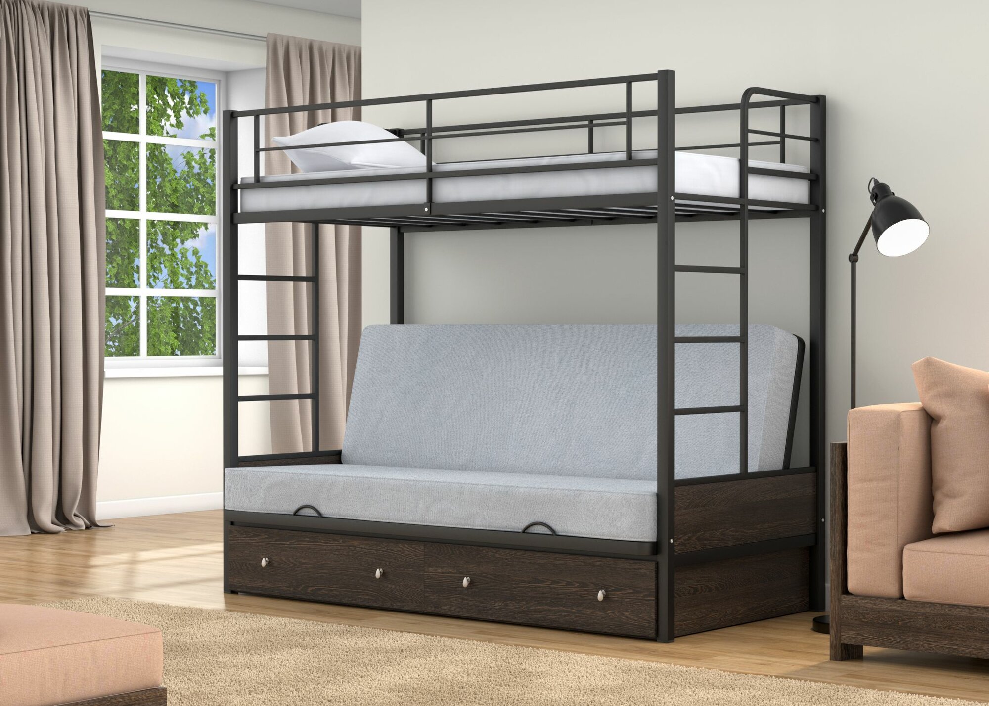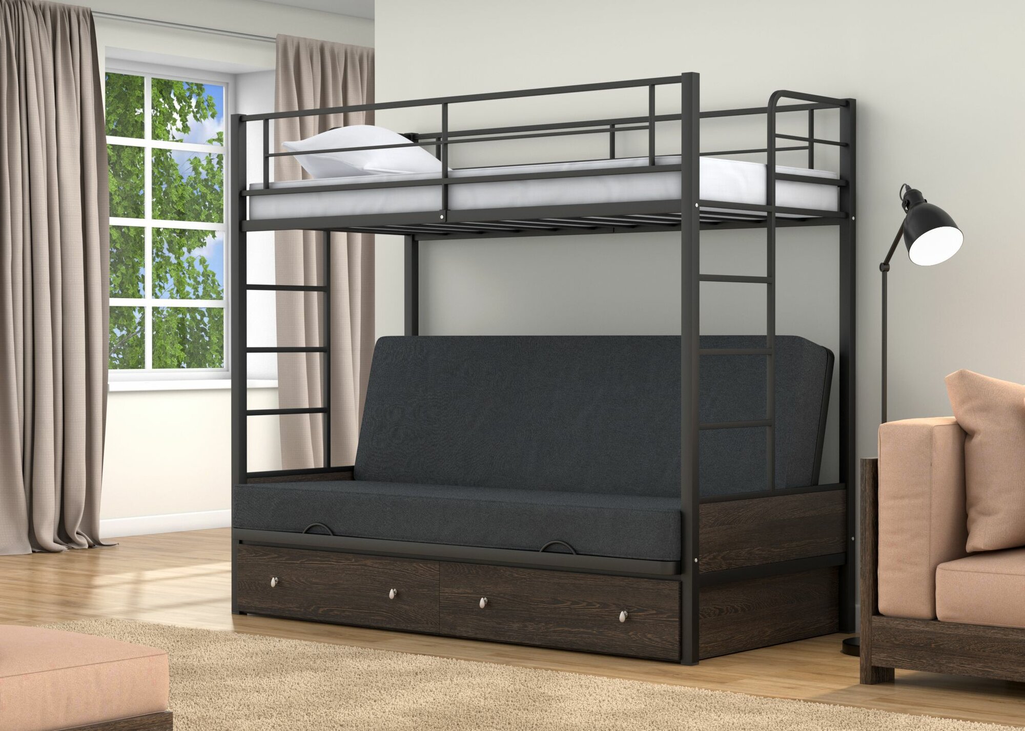 Двухъярусная кровать-диван Дакар 1 Серый ящики Венге 43 990 ₽