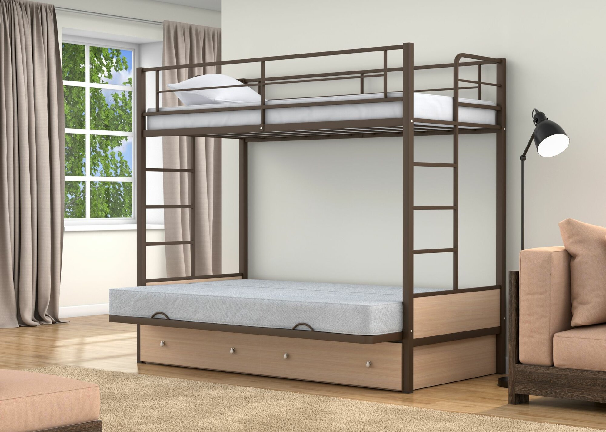 Отзывы на Двухъярусная кровать-диван Дакар 1 Коричневый ящики Дуб молочный