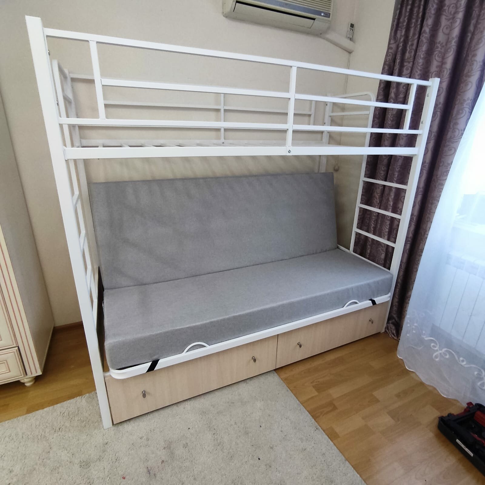 | Дополнительная информация | Нижний диван входит в стоимость изделия, наполнение ППУ 22й плотности, толщина 11 см. Обивка ткань рогожка. Верхний матрас не входит в стоимость и приобретается отдельно. Нижнее спальное место в разложенном виде 126х190 см, верхний ярус 90х190 см. |