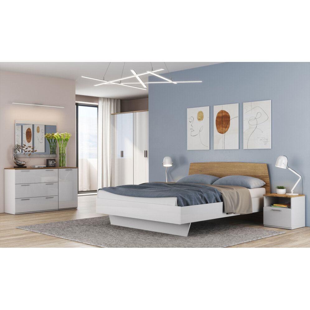 | Дополнительная информация | Основание кровати жесткое – 3 панели белой ЛДСП 16мм; Изголовье кроватей - структурированная плита в текстуре «Дуб Катания» 16 мм. |