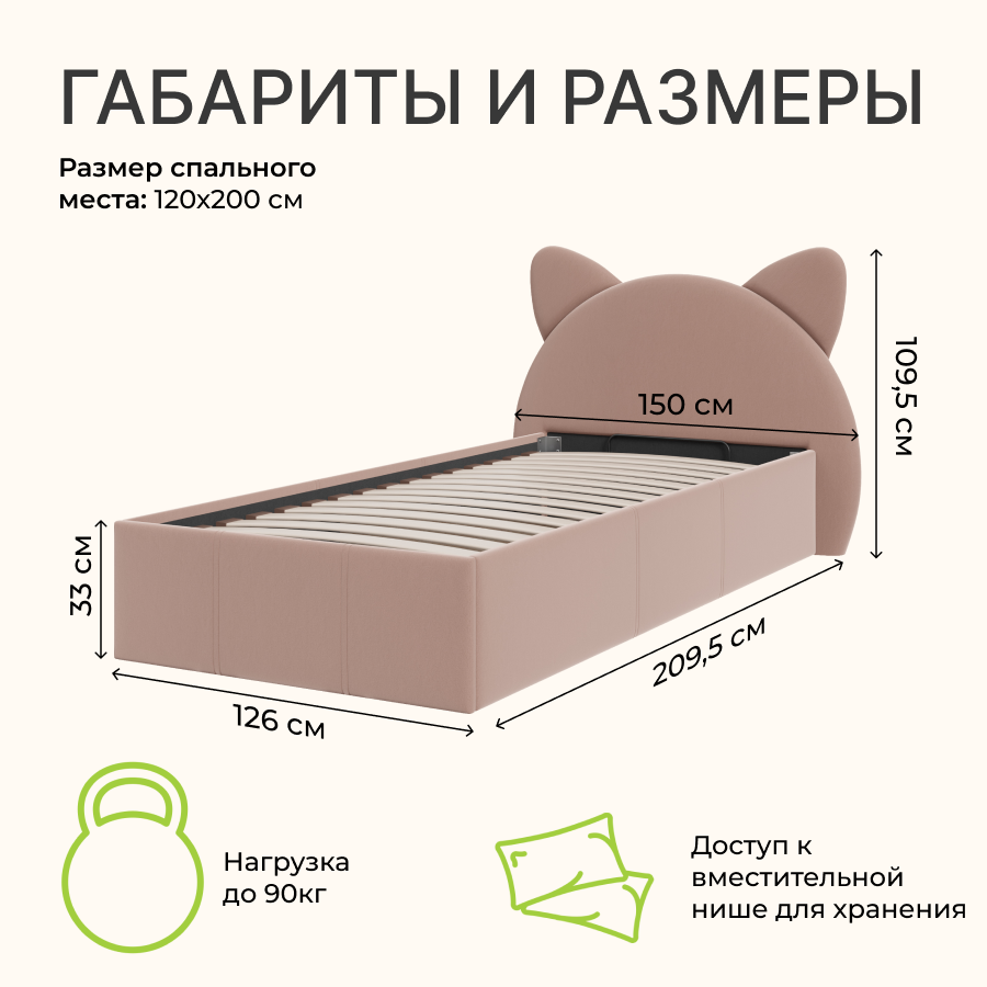 | Особенности | мягкое изголовье, с подъемным механизмом |