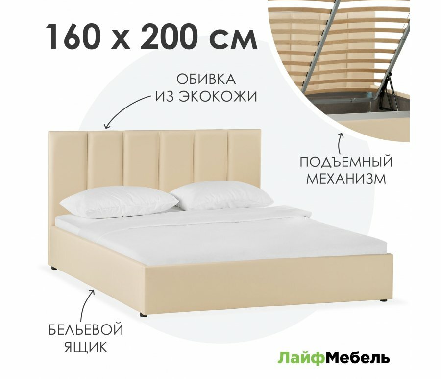 Двуспальная кровать Лайфмебель Афродита-3 160х200 с ПМ экокожа бежевая информация: