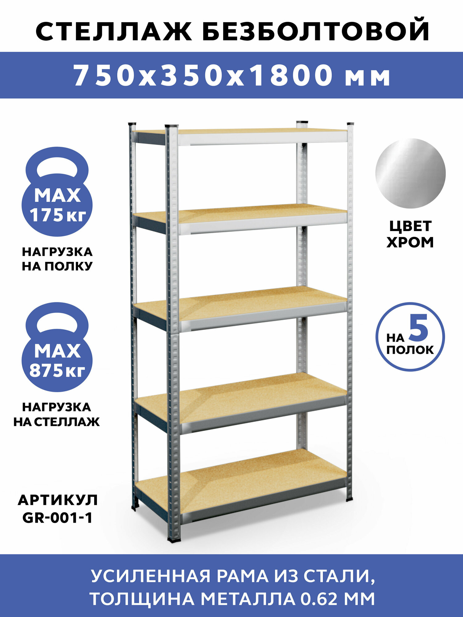 Стеллаж безболтовой GASTRORAG GR-001-1 75x35x180 информация: