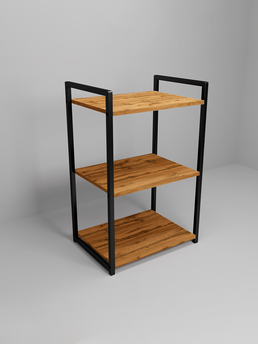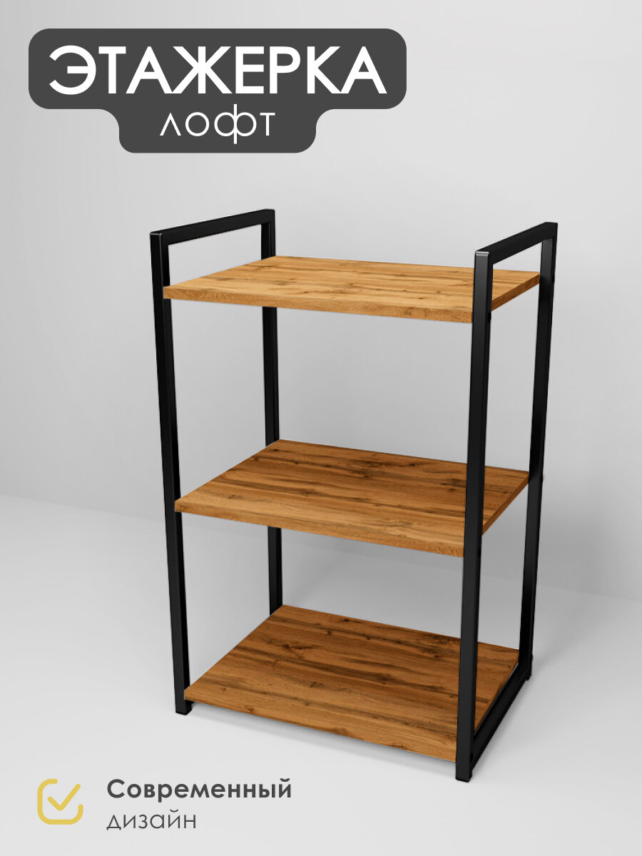 Металлический стеллаж- этажерка Лофт для ванной, кухни, Уютный мастер, черный металл, дуб вотан информация: