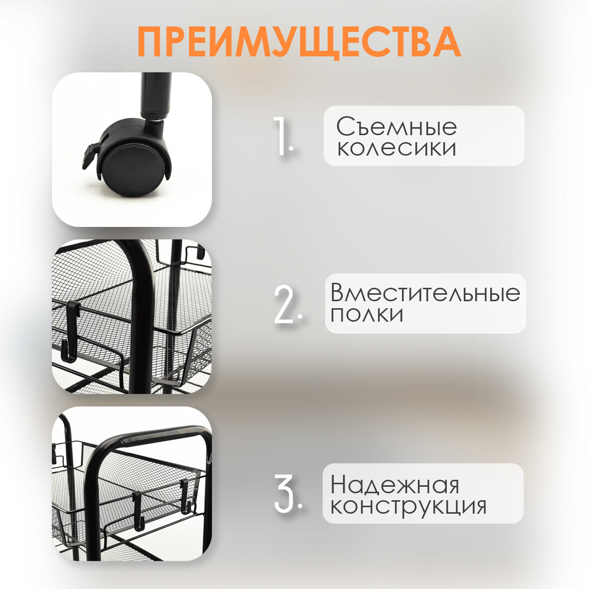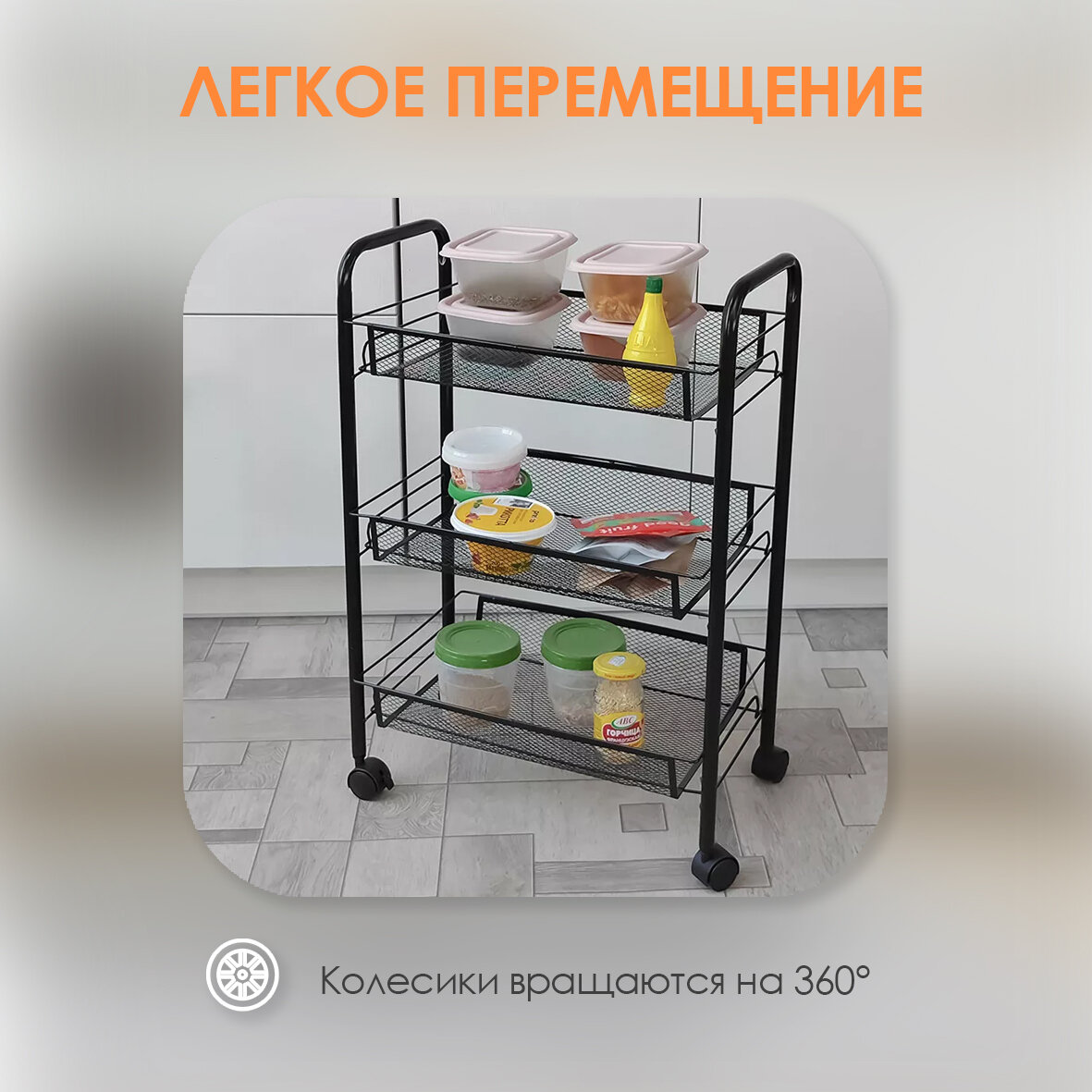 Этажерка металлическая 3-х ярусная на колесах черный информация: