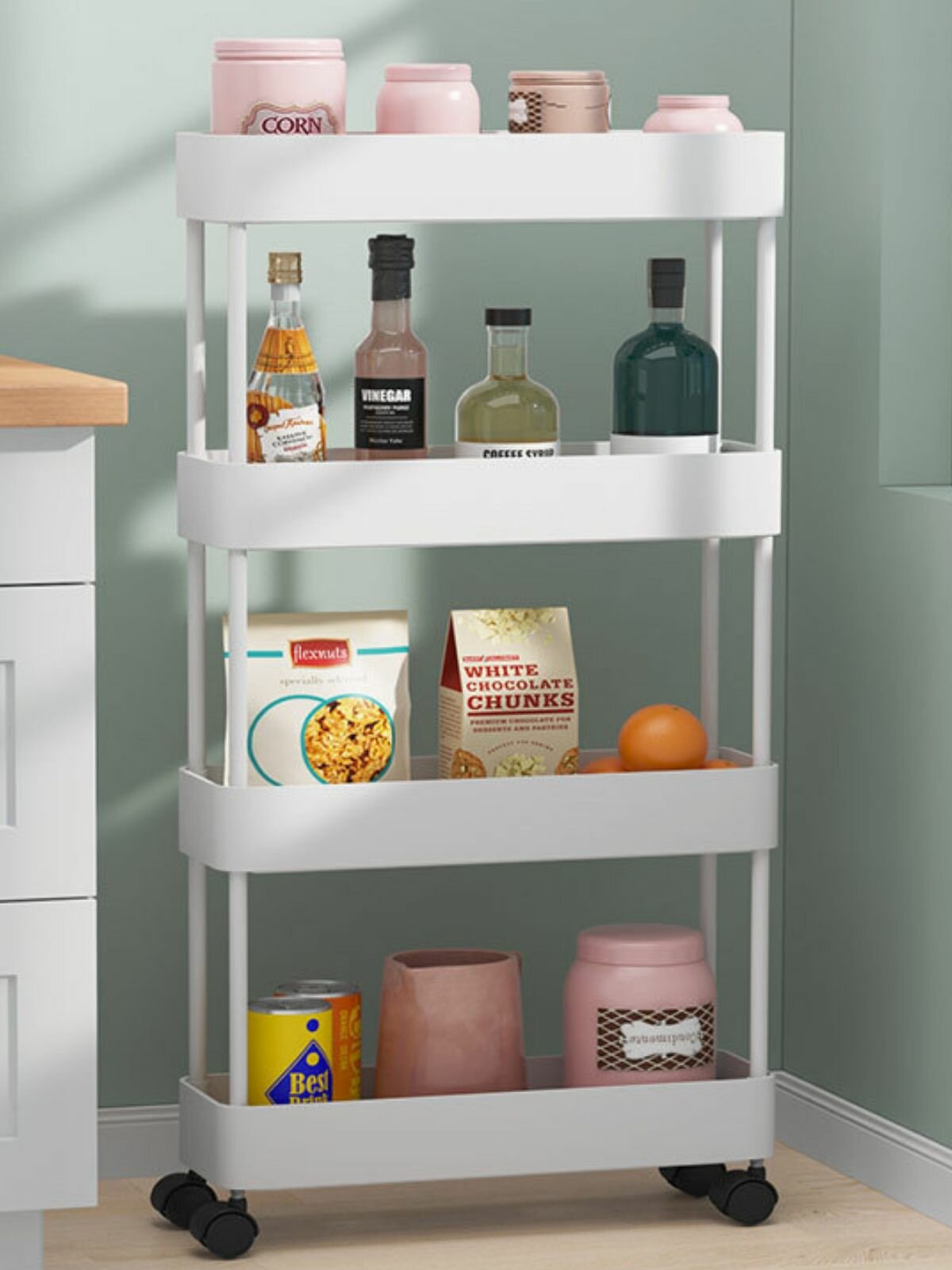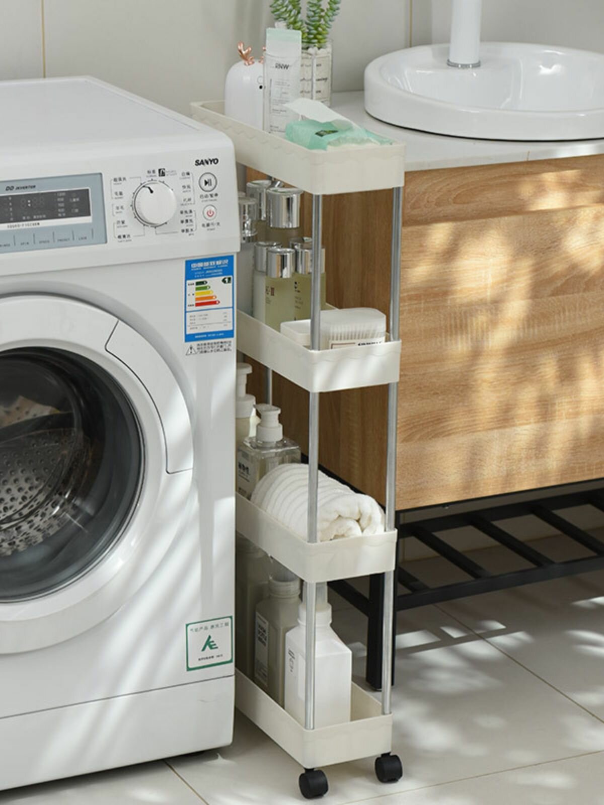 Этажерка узкая пластиковая на колесиках для ванной и кухни информация: