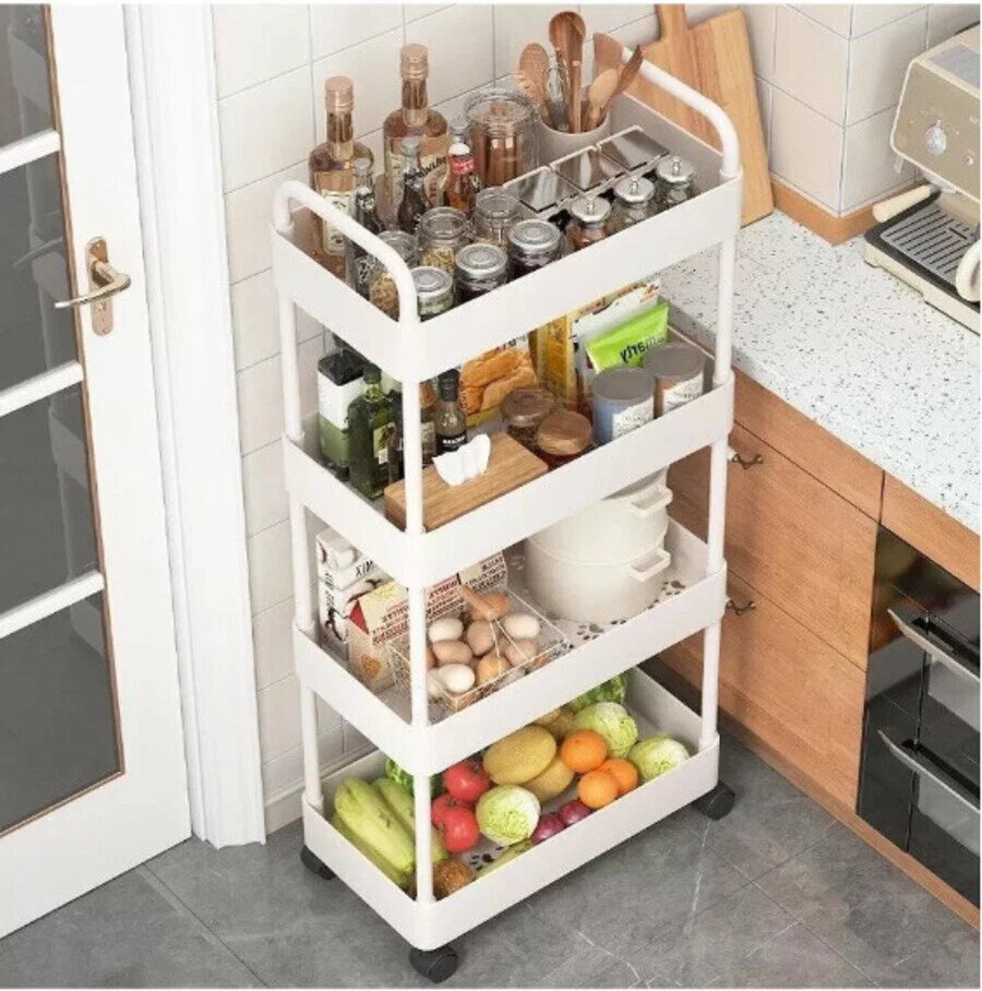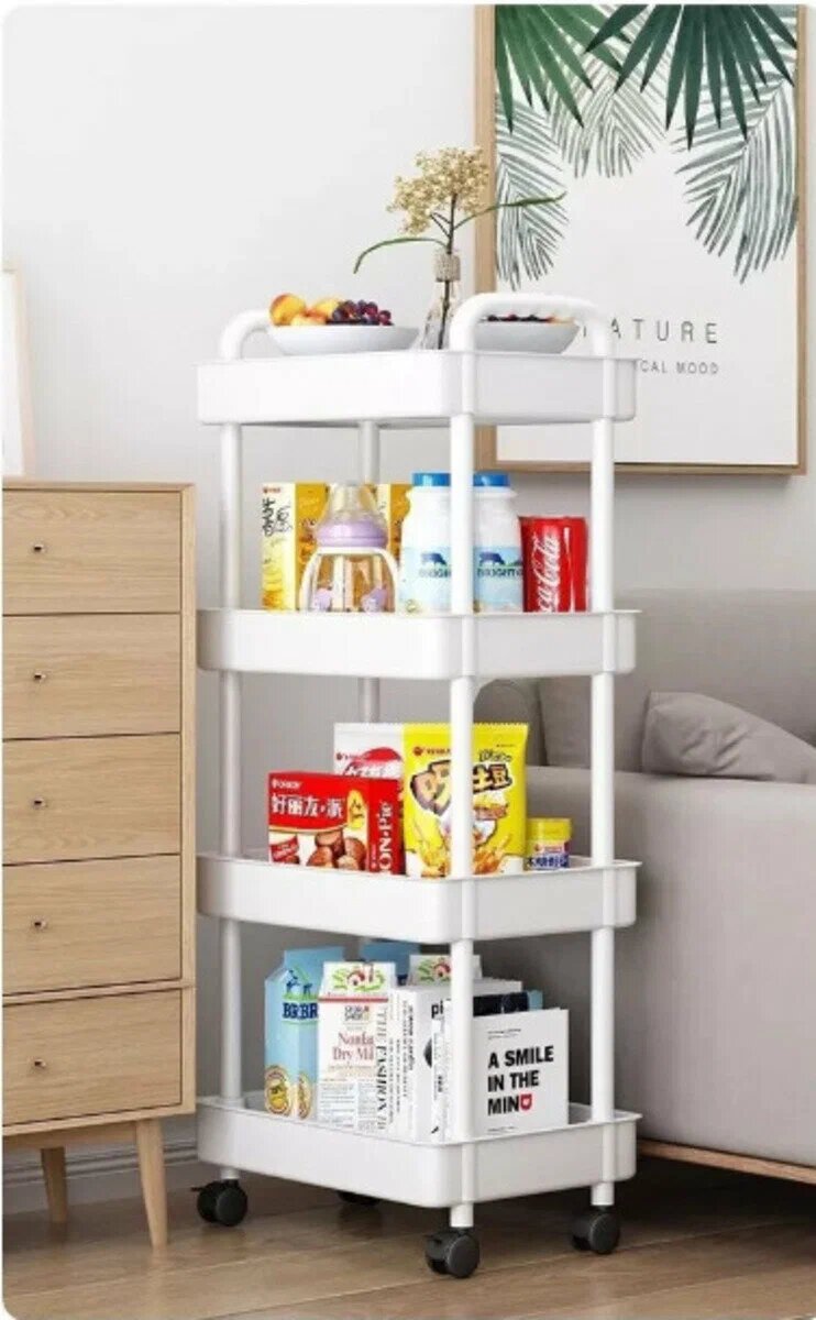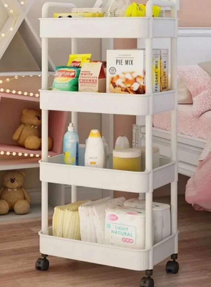 10 цен на Стеллаж для хранения в виде тележки 4 яруса. Цвет: белый
