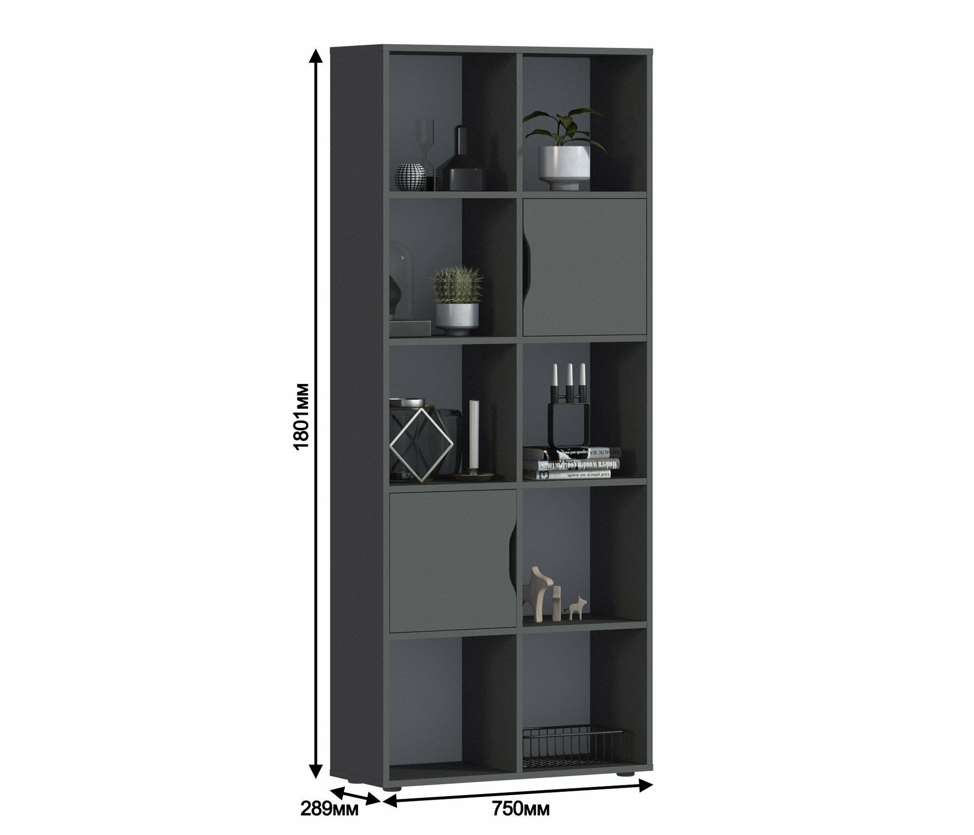 Стеллаж Бруклин СБ-3351 с открытыми полками, с 2 дверцами Диамант серый 75х180х28 см информация: