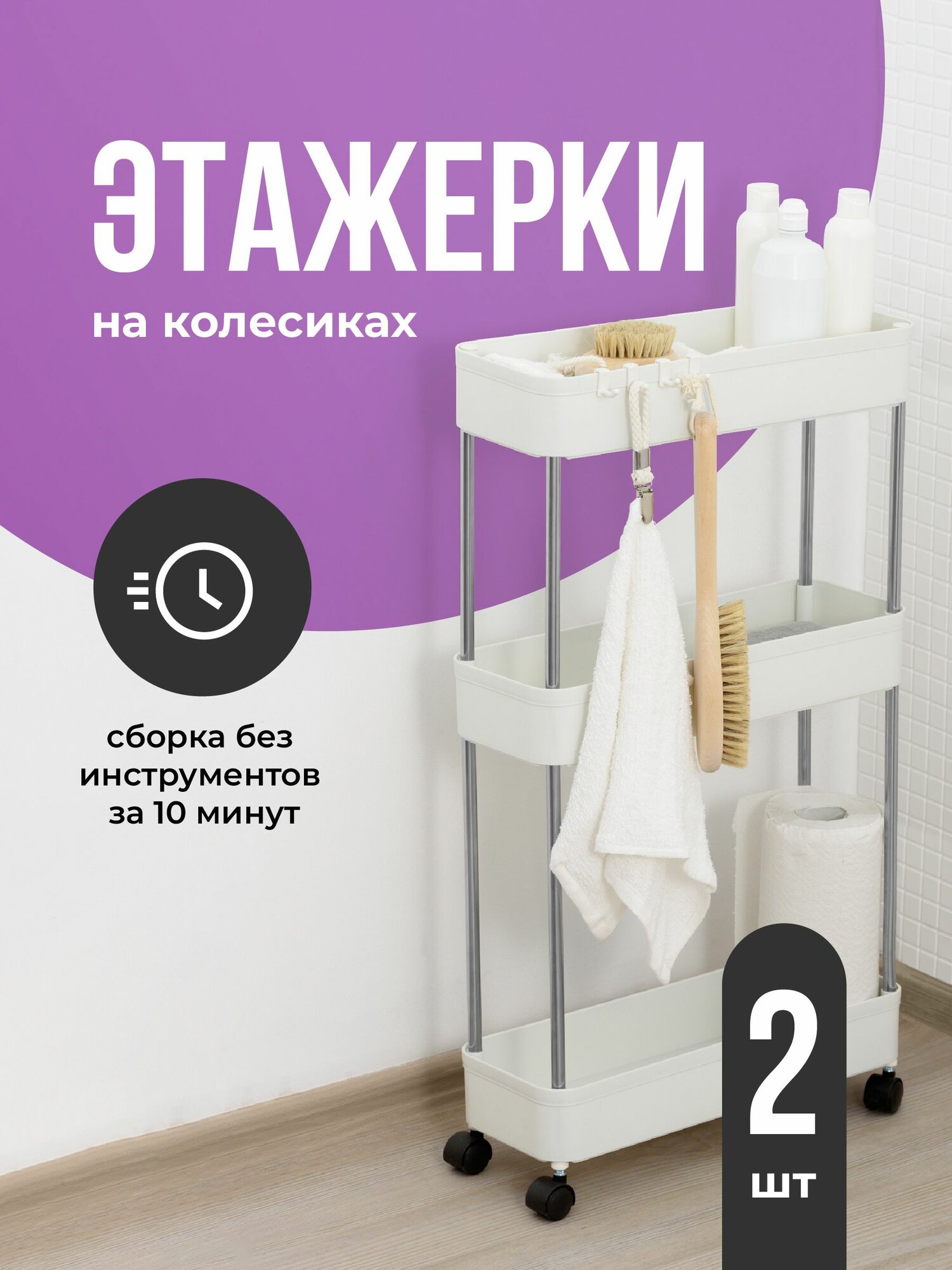 10 цен на Этажерка для ванной на колесиках Birdhouse, Узкий стеллаж для кухни, Полка на колесиках пластиковая, 2 шт