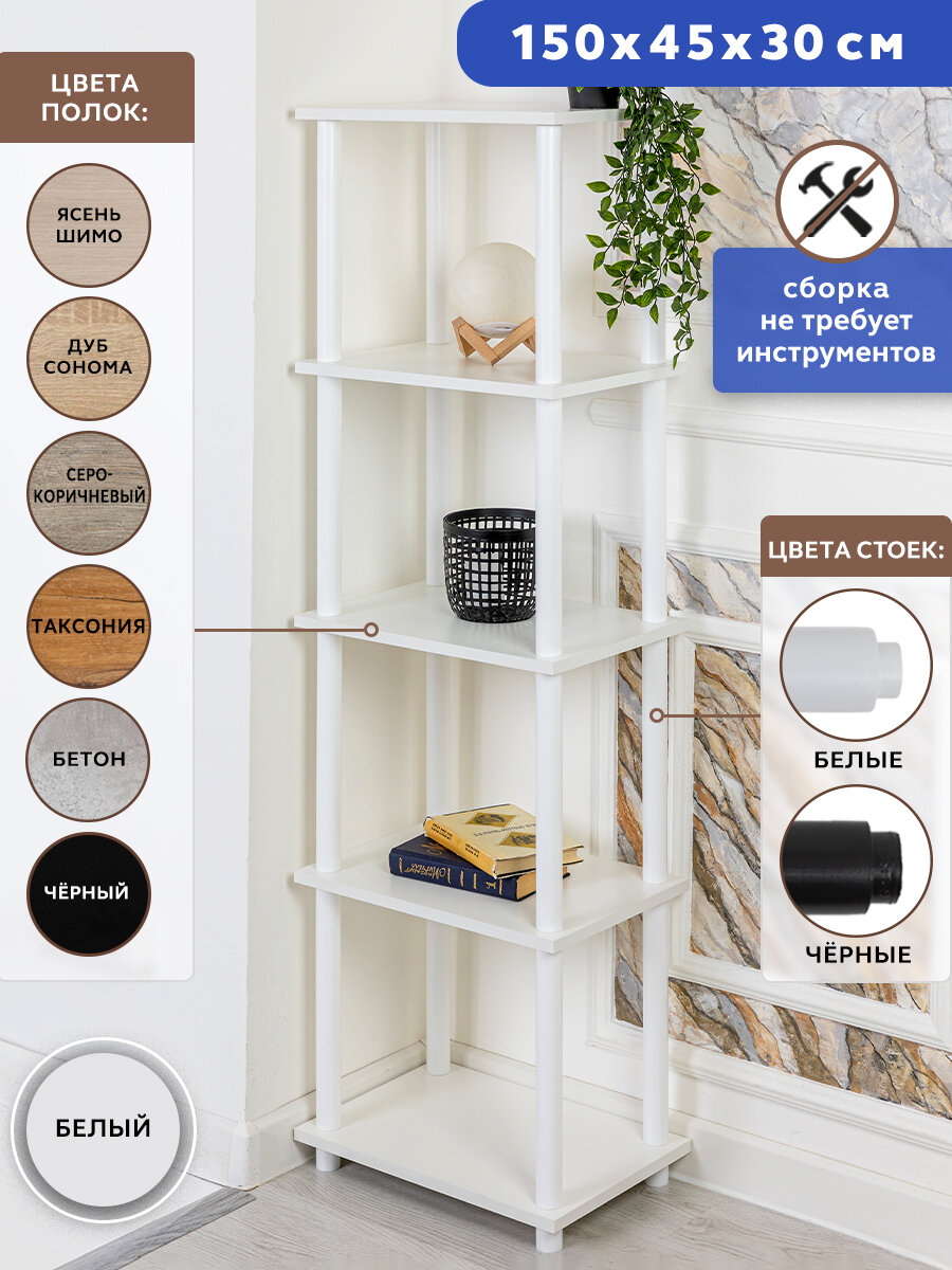 10 цен на Стеллаж деревянный GASTRORAG 1450/5, Этажерка напольная, полка ЛДСП размеры 45 х 30 х 148.5 см