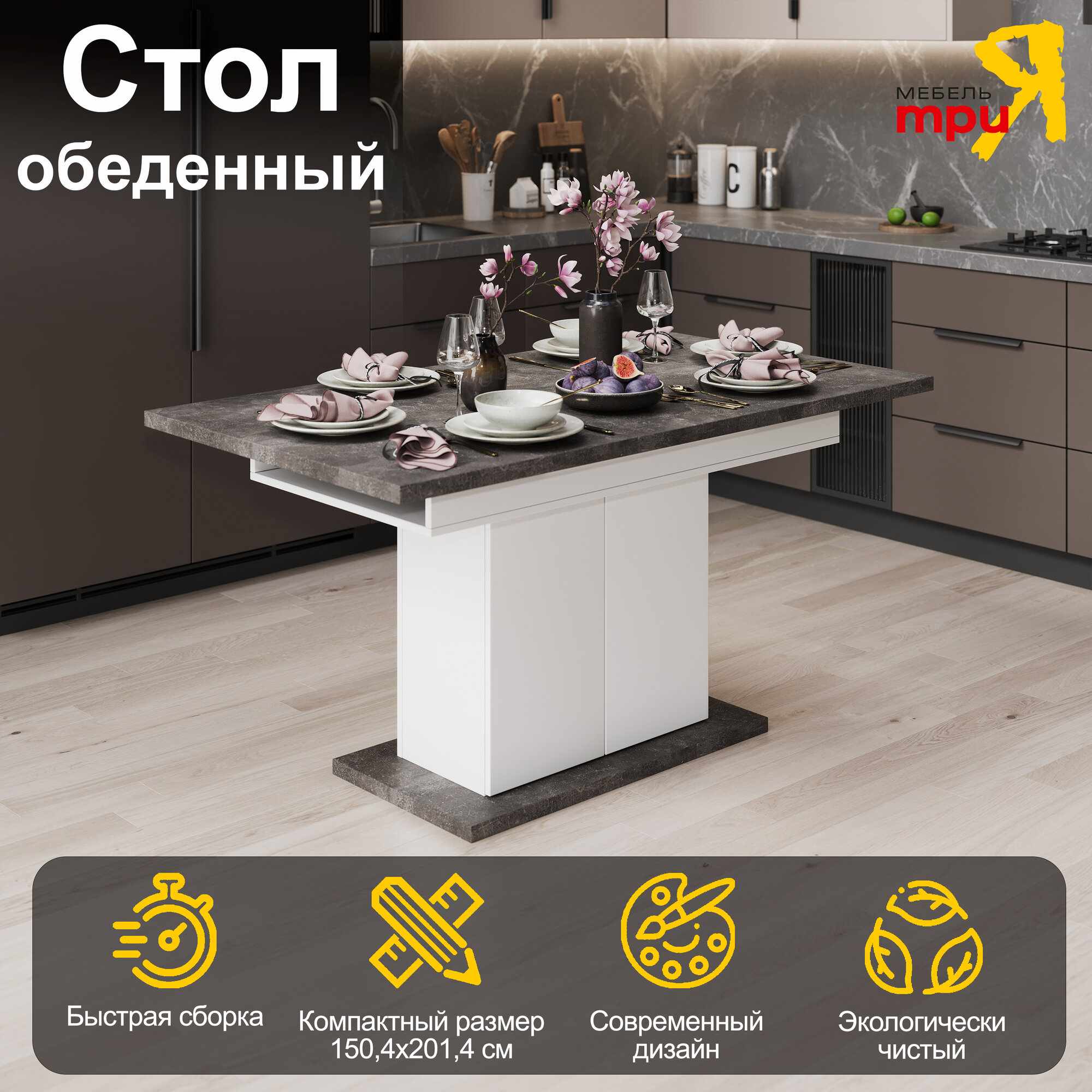 Стол белый, серый раздвижной, Тайлер информация: