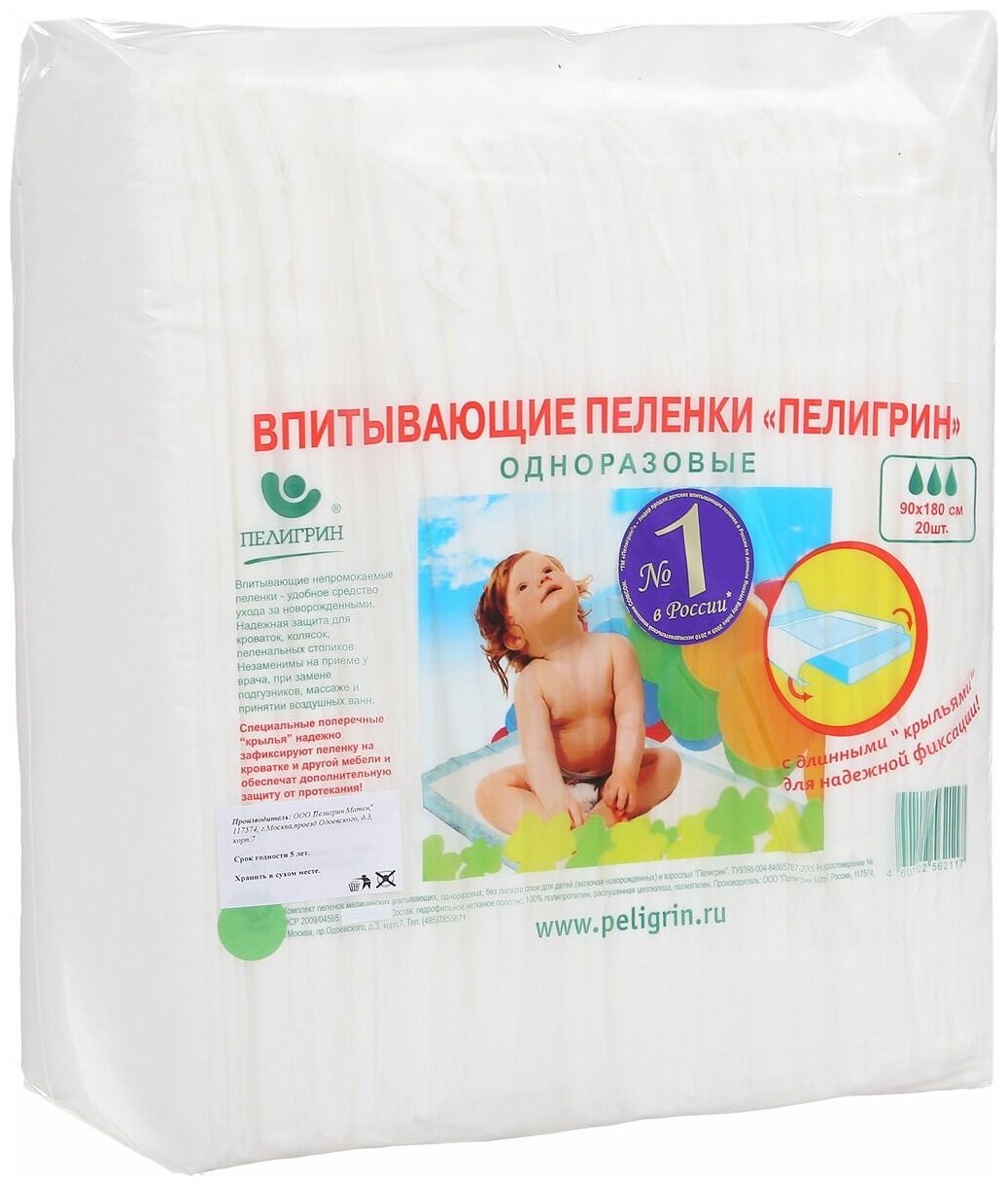 Одноразовые пеленки Пелигрин 90х180см 20 шт. информация: