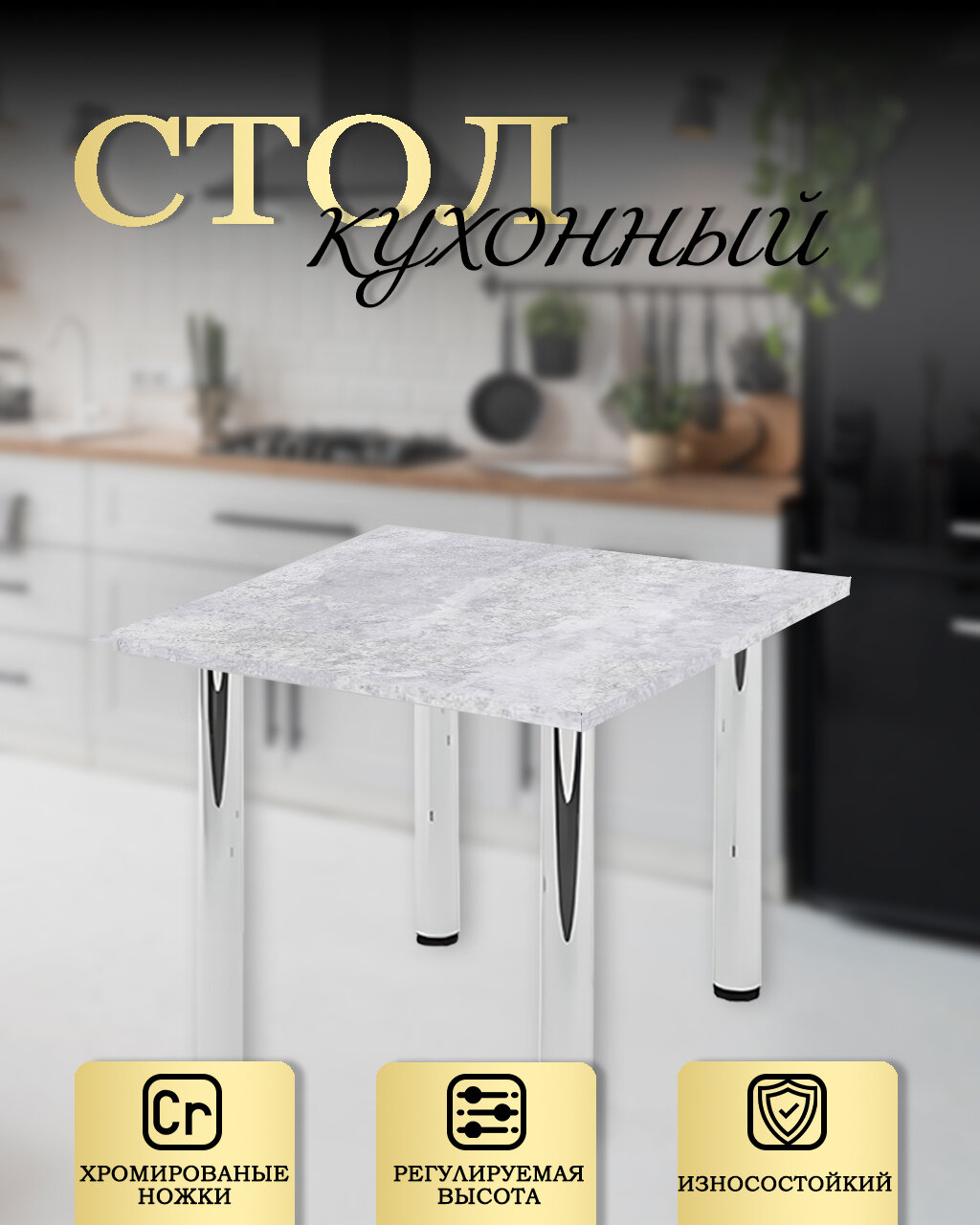 Стол кухонный OMEGAMEBEL 70х60, ЛДСП, серый/бетон, квадратный, 4 ножки информация: