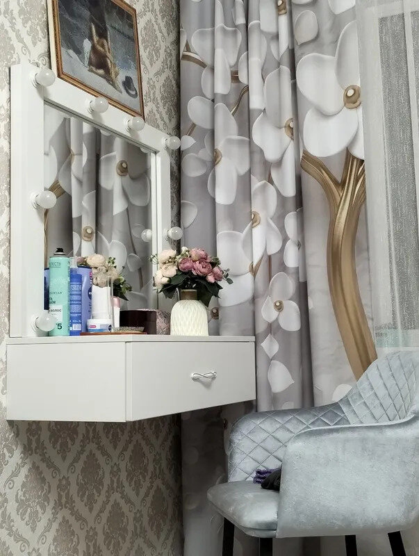 Отзывы на Туалетный столик, Гримерное зеркало с подсветкой и консолью 80х90х35, цвет Белый