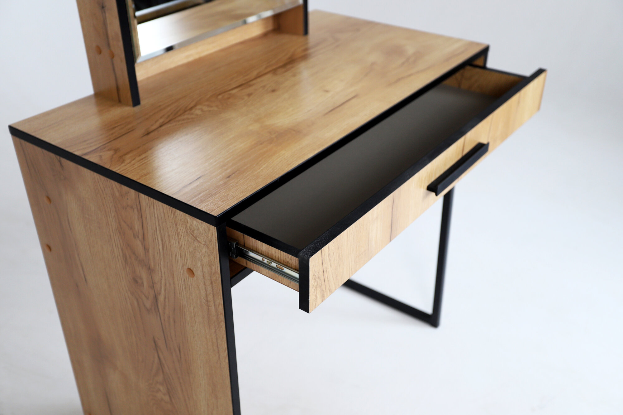 Есэндвич Loft Депо Туалетный столик с зеркалом 80х170х40 см, (Дуб сонома/Белый), с полками, с ящиком