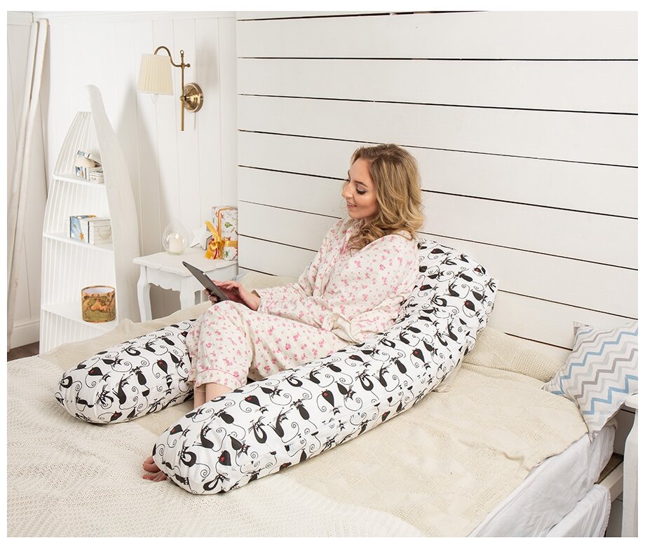 Подушка для беременных U-комфорт, 70x350, Котики белая информация: