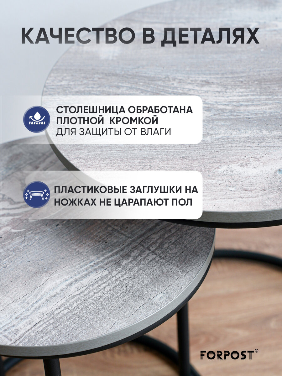 Отзывы на Журнальный столик круглый, 2 штуки, бетон пайн темный