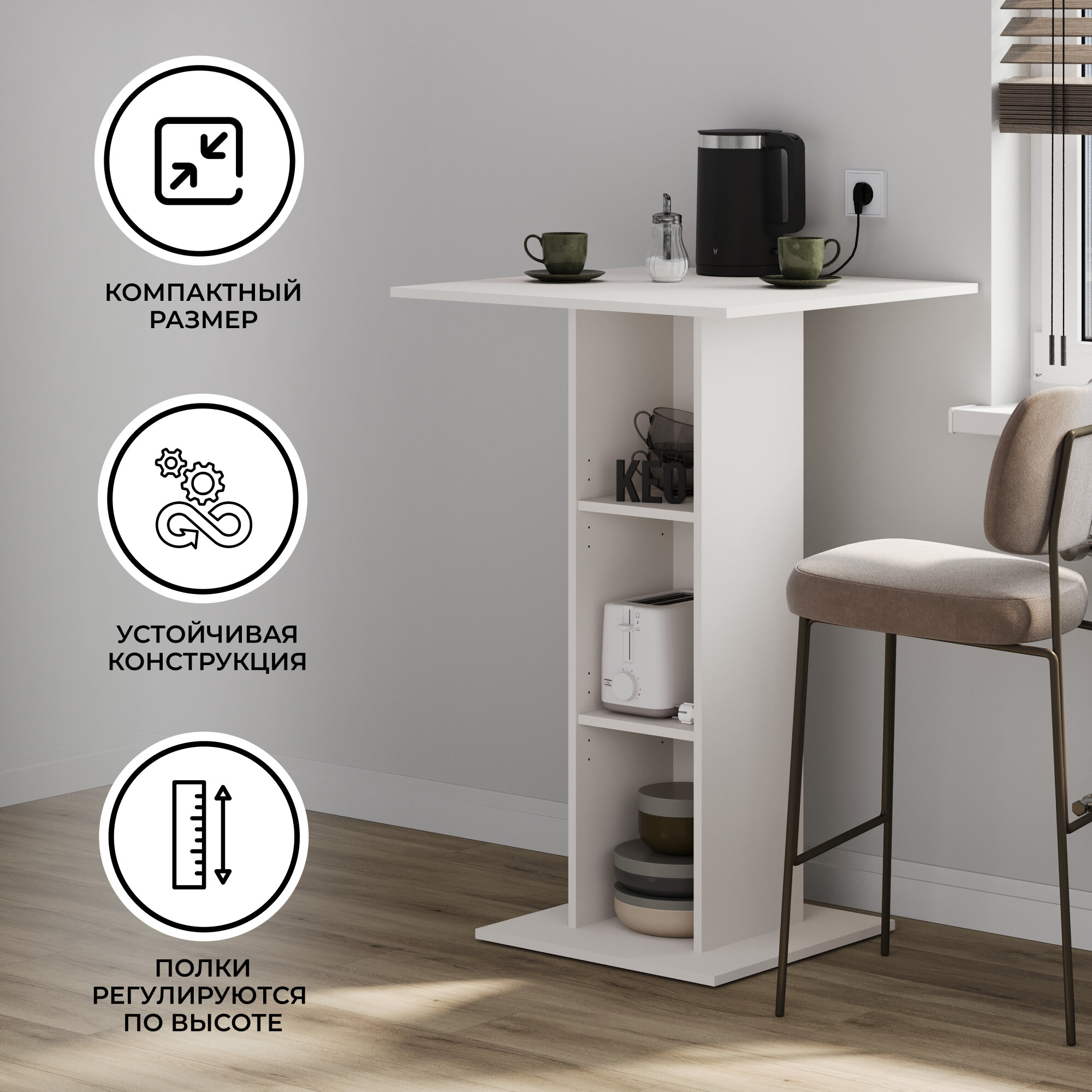 Стол барный Кео СЛБ-417, 109х70х70, с полкой, белый информация: