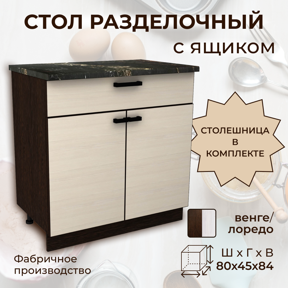 Стол разделочный с ящиком, шириной 80 см, венге/лоредо информация:
