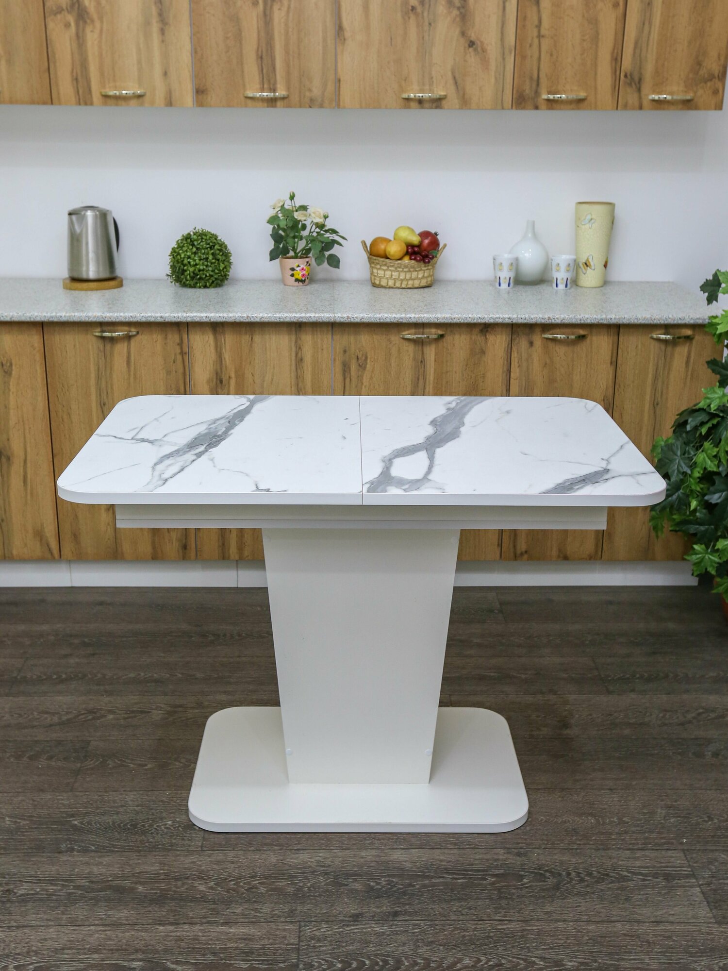 Отзывы на Стол кухонный раздвижной 1080 (1370)*680*770 на одной ножке EVITA пластик белый мрамор / стол обеденный / стол кухонный раскладной