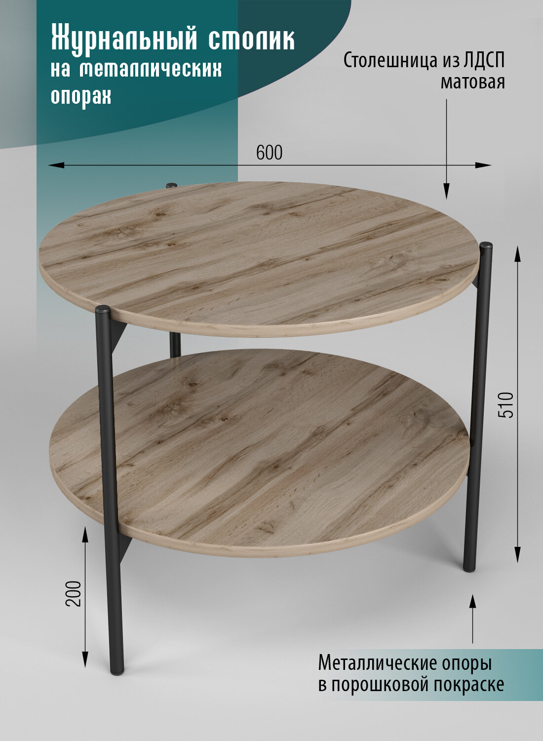 Стол журнальный Шафран дуб/черный информация: